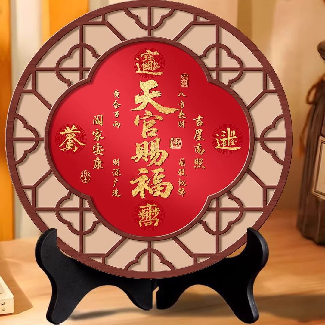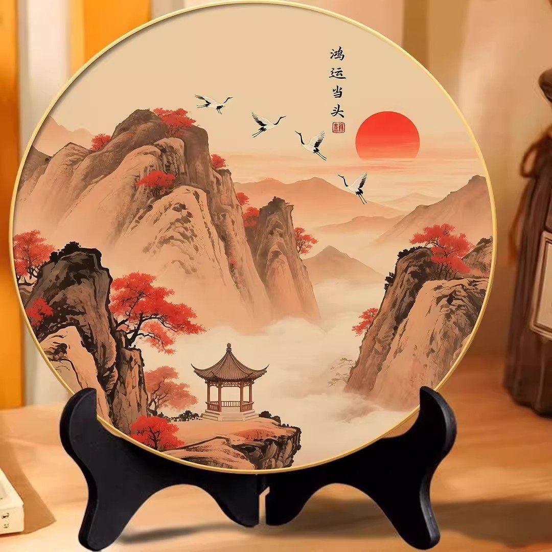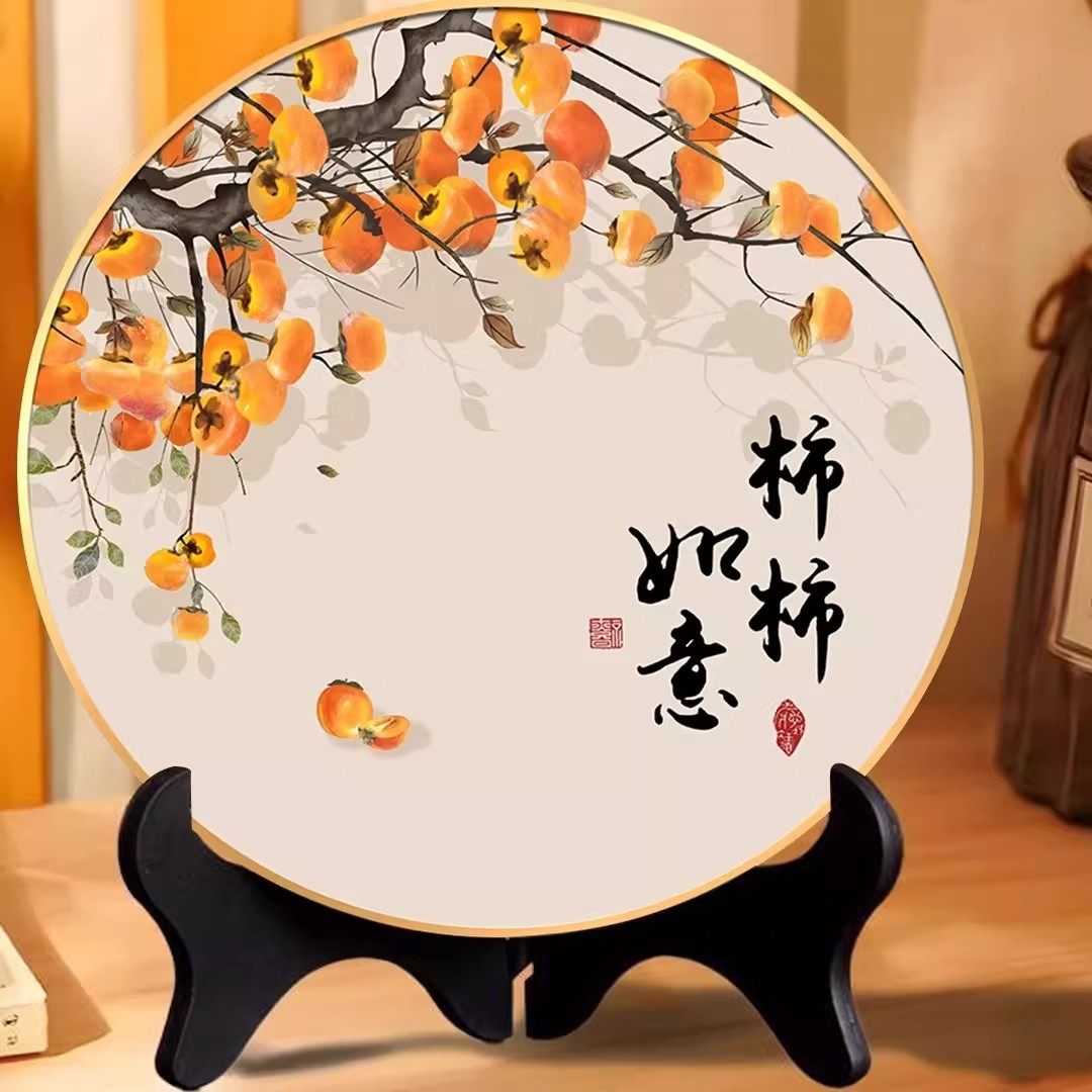 新中式餐厅装饰画饭厅墙面壁画客厅沙发背景墙挂画圆形柿柿如意画