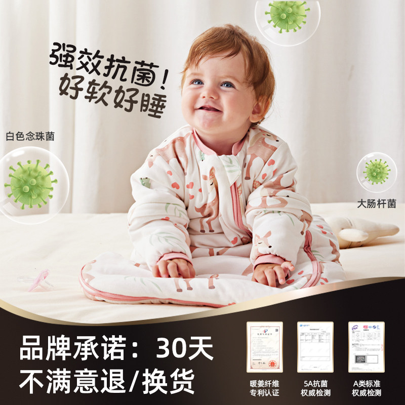 贝肽斯[肽柔]婴儿睡袋秋冬款儿童宝宝防踢被恒温分腿睡袋四季通用