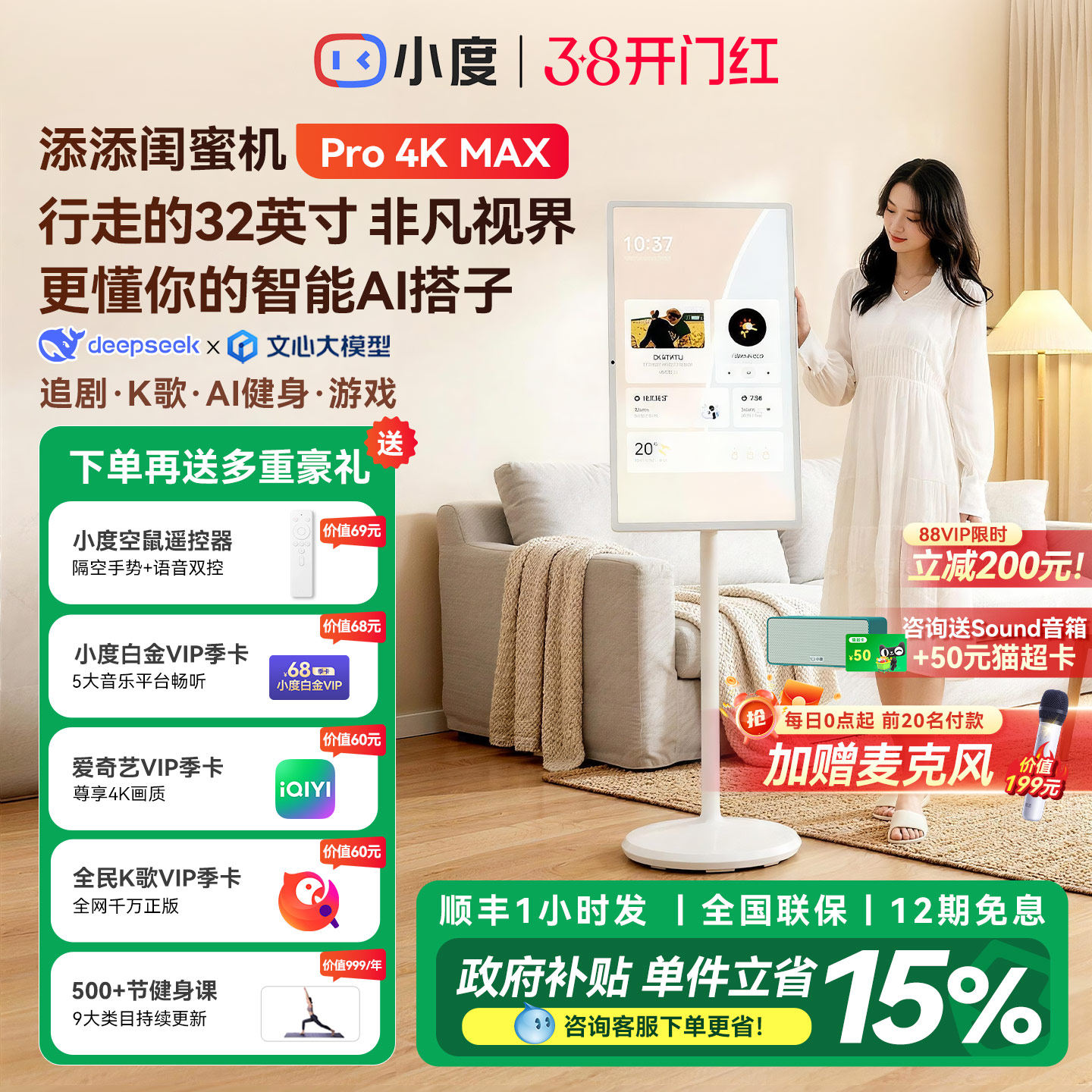 [政府补贴15%]小度添添闺蜜机32英寸4KProMax移动电视投屏投影仪