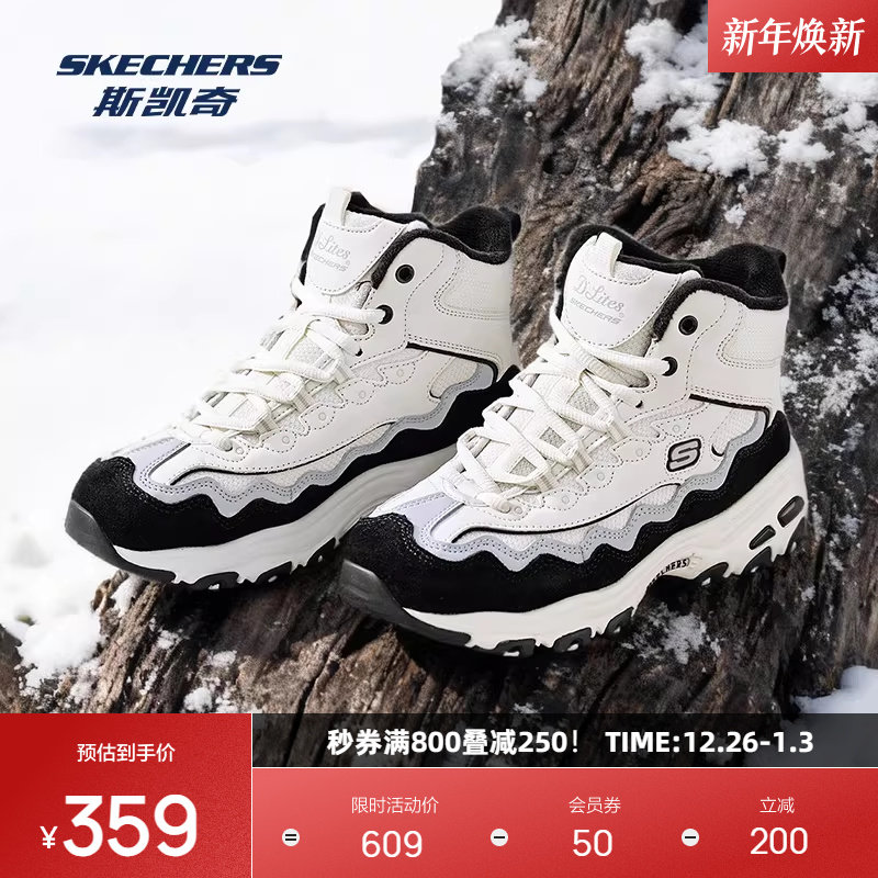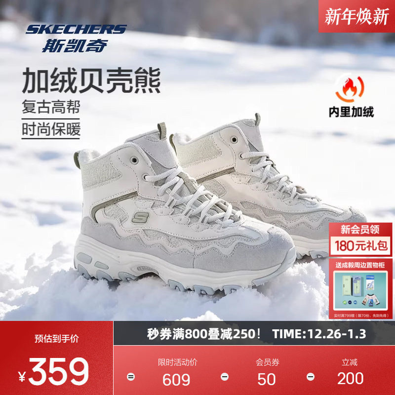 斯凯奇贝壳熊秋冬加绒保暖女子复古高帮时尚超轻熊猫鞋舒适老爹鞋