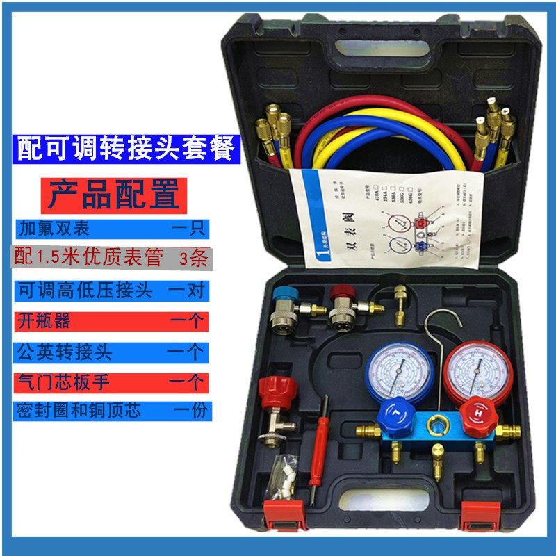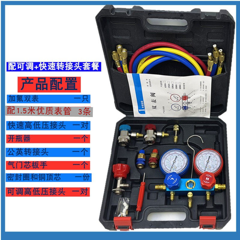 优质加液双表汽车空调加氟表/雪种压力表/冷媒双表阀家用维修工具
