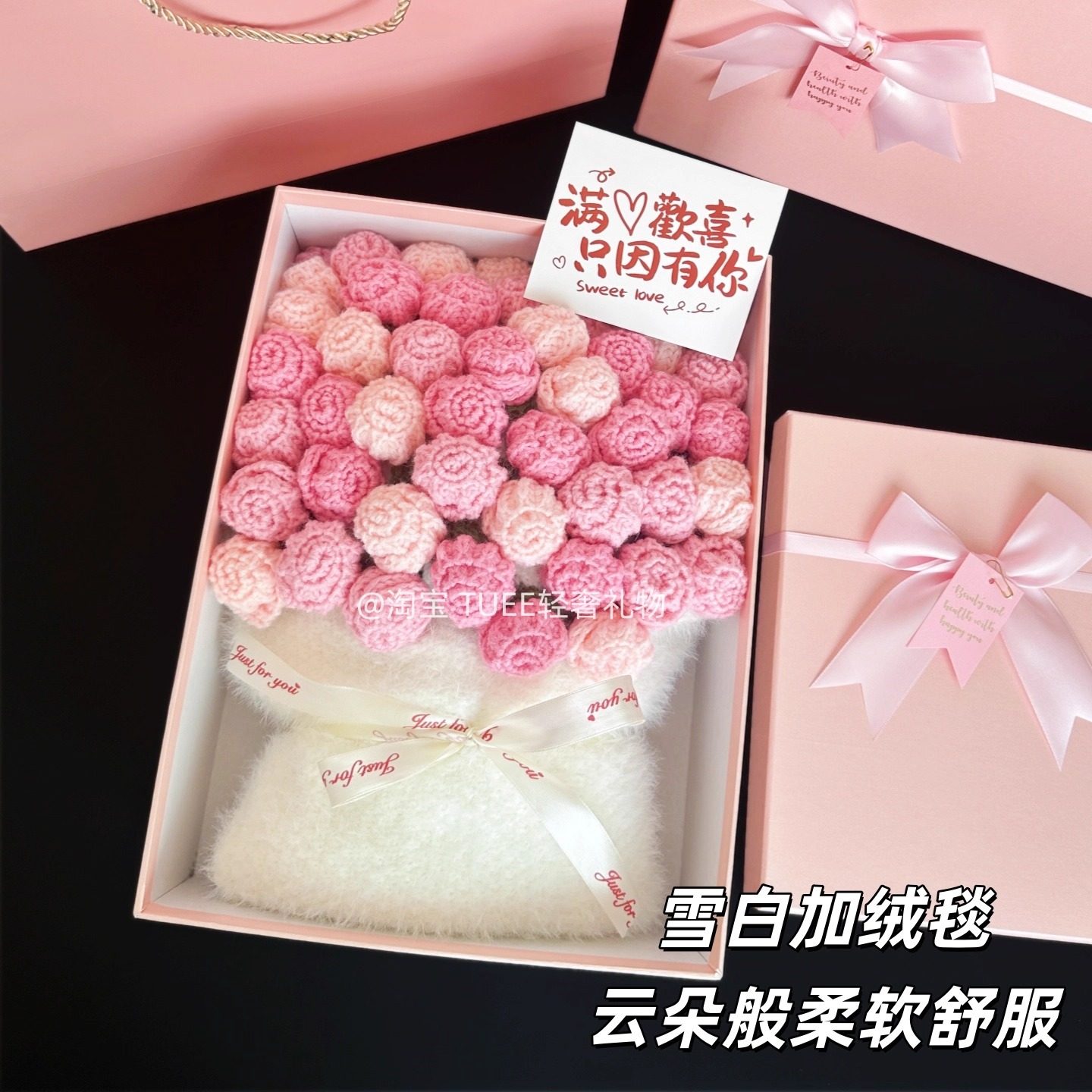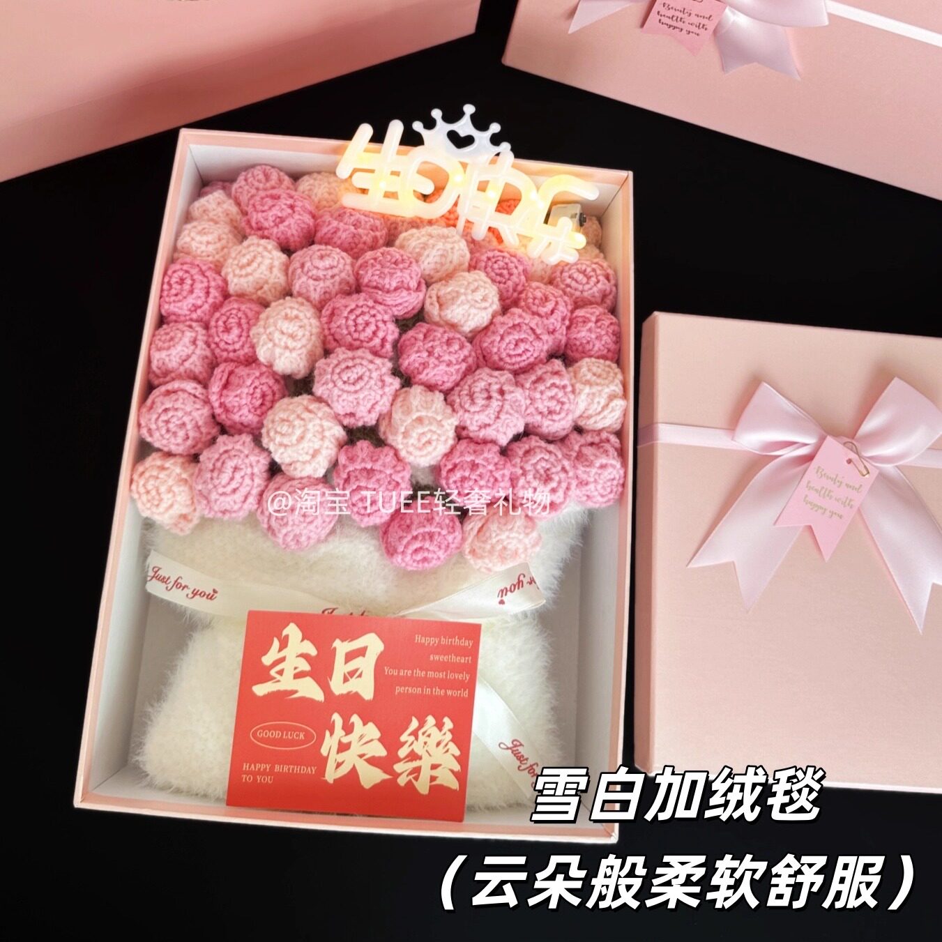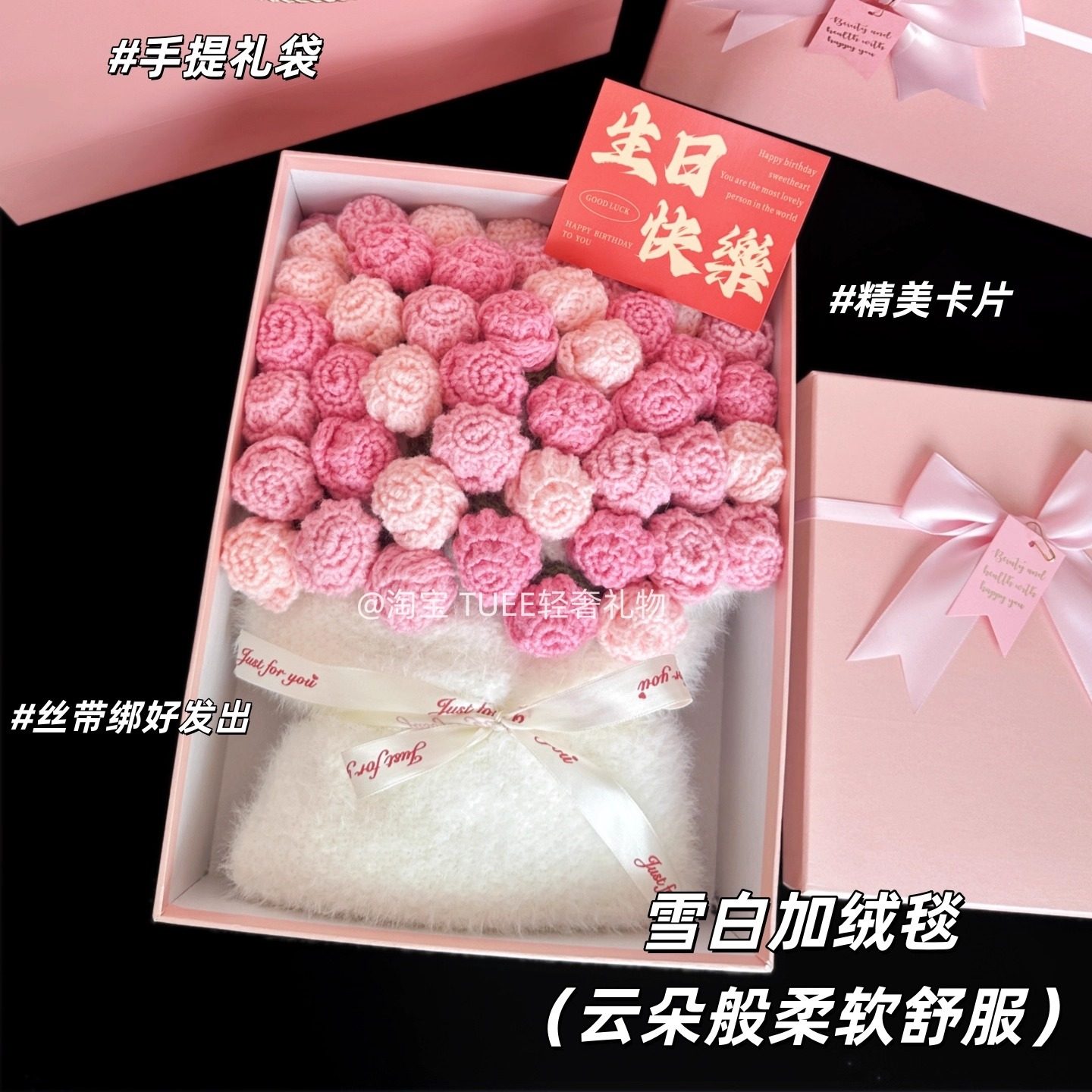 加绒渐变色玫瑰花束毛毯子成品鲜花手工编织送人闺蜜生日礼物女生