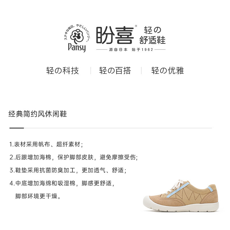 Pansy盼喜日本女鞋日系轻便舒适圆头软底百搭宽胖脚拇外翻女士鞋