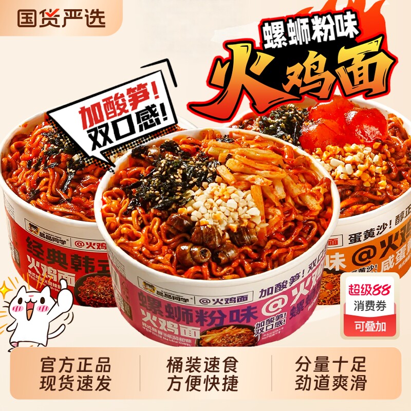 品品同学螺蛳粉味火鸡面经典韩式辣酱咸蛋黄夜宵充饥干拌面桶装