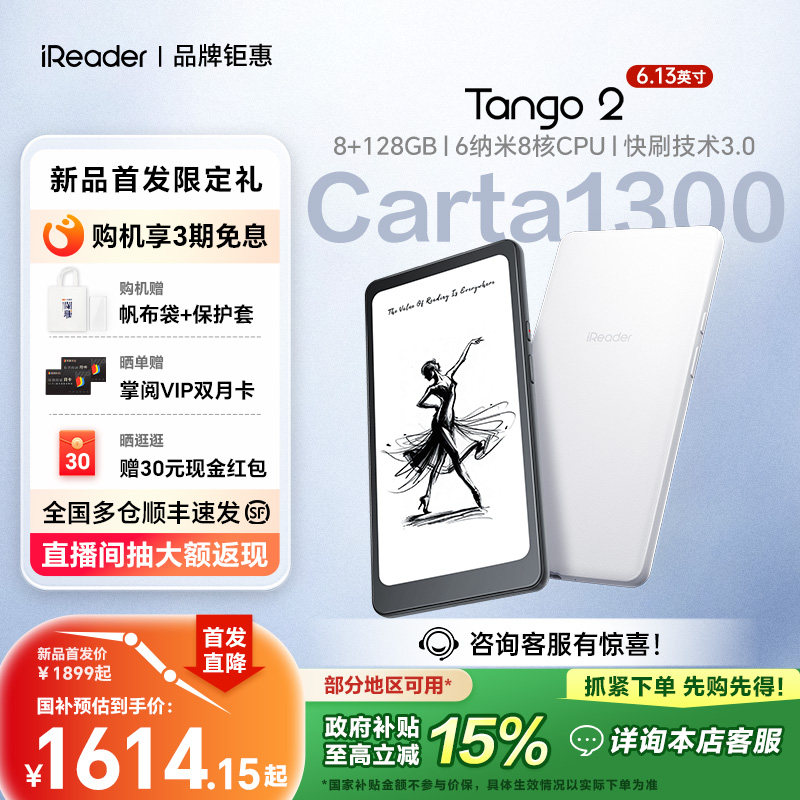 【新品上市】掌阅iReader Tango 2 电子书阅读器6.13英寸墨水屏手机电子纸护眼阅览器电纸书水墨屏书小说漫画