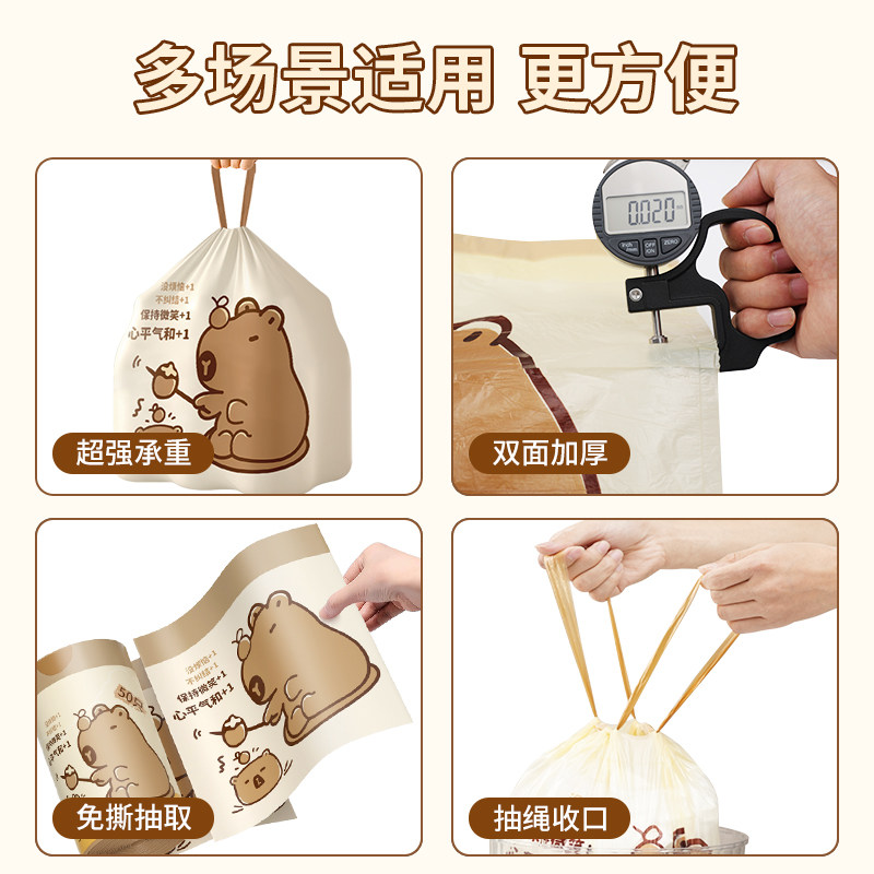 100只卡皮巴拉45*45cm家用厨房高颜值抽绳式超厚垃圾袋多规格