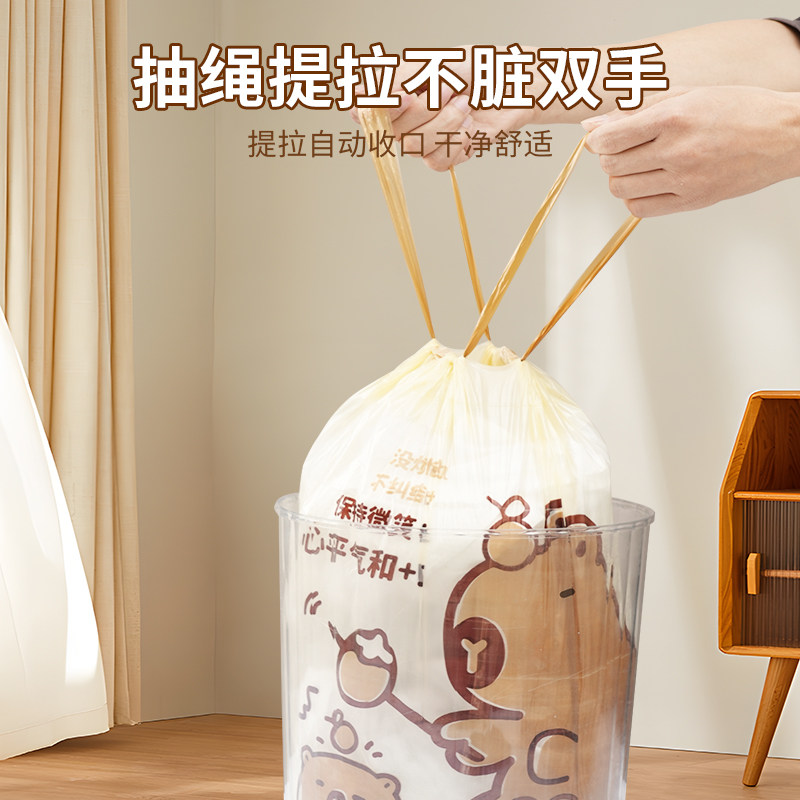 小熊印花垃圾袋家用加厚手提式大号免撕抽绳塑料袋厨房专用