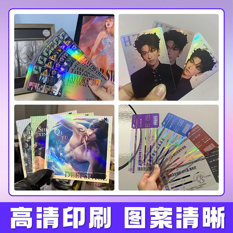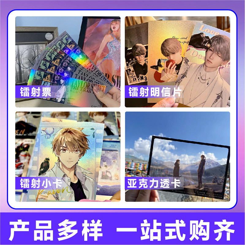 镭射小卡片定制明星照片自印逆向镭射明信片门票根动漫周边应援签名方卡UV烫金银色闪卡满天星二次元素面来图