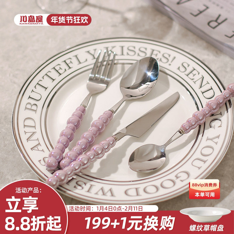川岛屋法式牛排刀叉西餐餐具两件套装高级感不锈钢三件全套刀叉勺