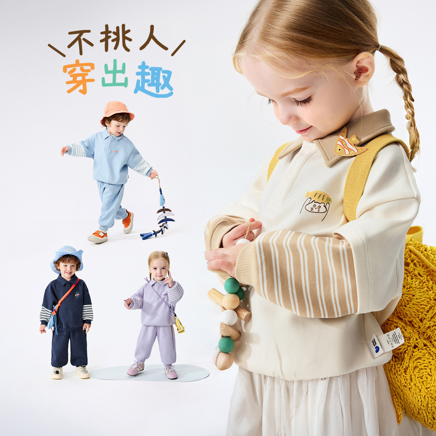 迷你巴拉男女童套装儿童假两件不易起球变形卫衣卫裤2026春新品