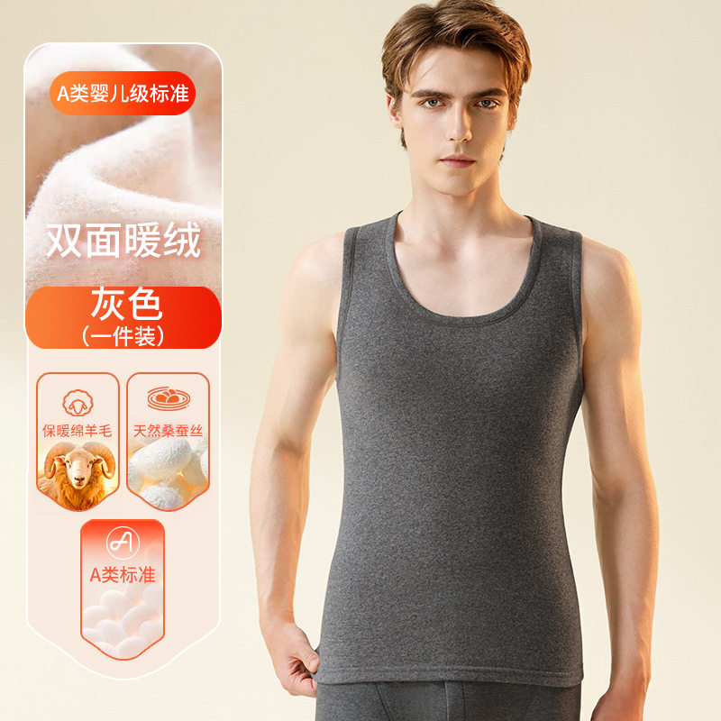 奥康羊毛蚕丝保暖内衣男绒德无痕发热加绒加厚内穿打底背心冬上衣