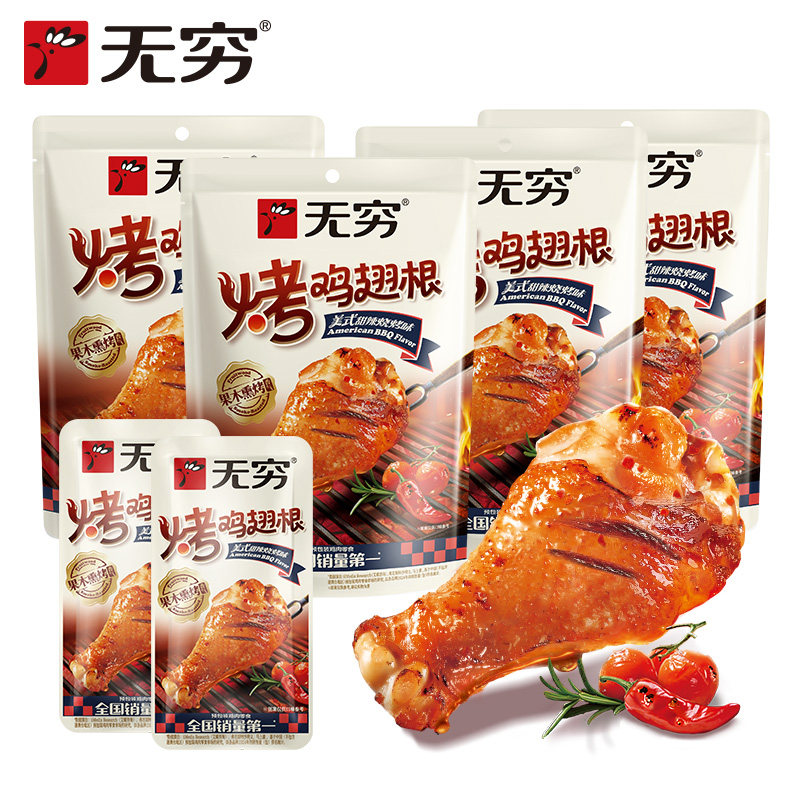 无穷美式甜辣烧烤味烤鸡翅根58g小鸡腿休闲零食小吃宵夜