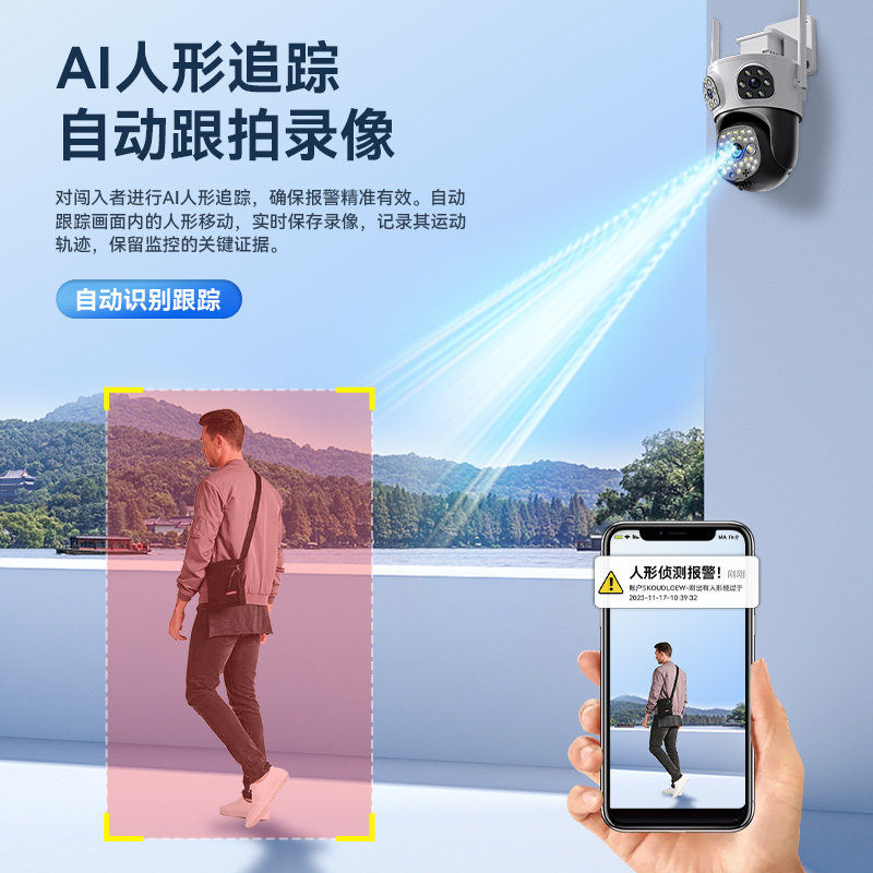 奥克斯摄像头监控器360度无死角室外无需wifi网络家用手机远程影
