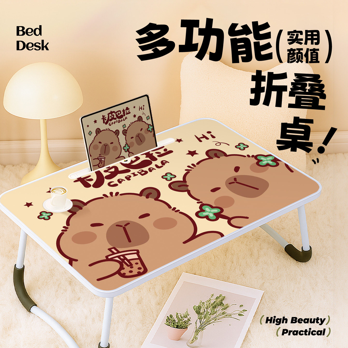 卡皮巴拉床上小桌子笔记本电脑桌学生宿舍可折叠儿童学习书桌家用写作业小桌板卧室飘窗床头桌懒人神器膝上桌