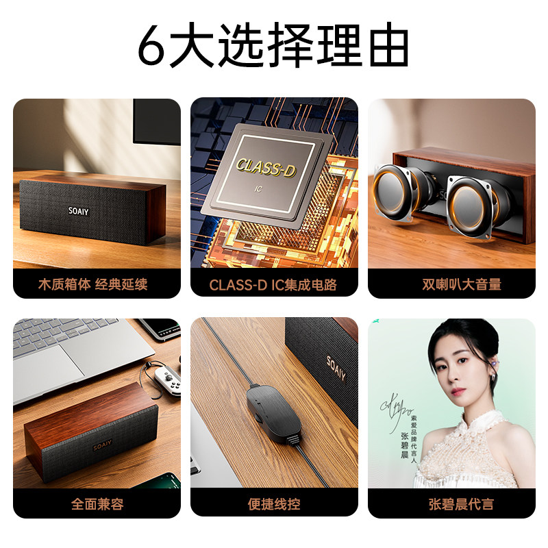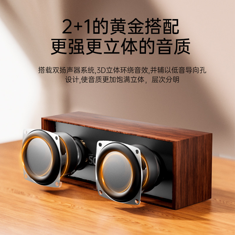索爱电脑音响台式家用笔记本桌面专用低音炮木质有线USB小音箱