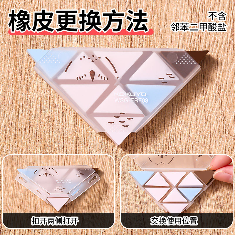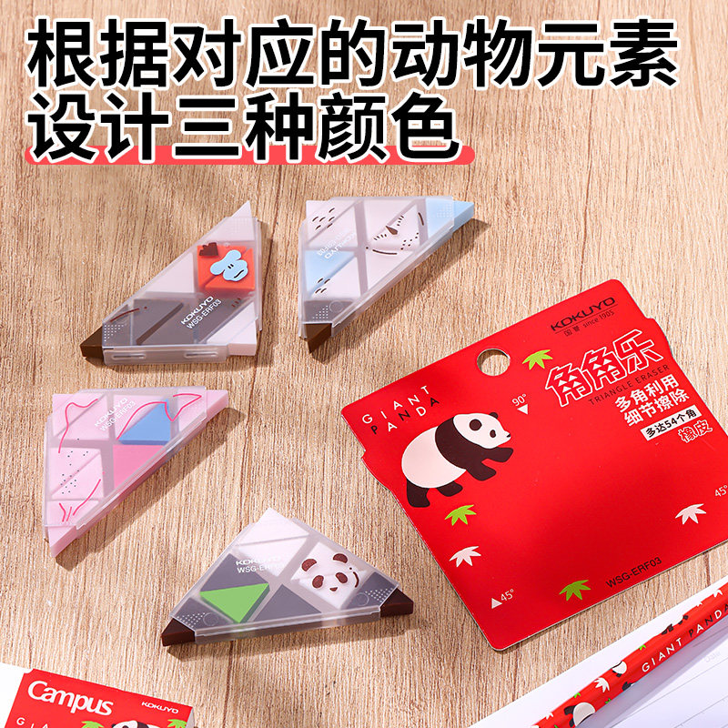 日本国誉KOKUYO角角乐橡皮擦濒危物种铅笔橡皮三角形多角擦细节象皮可爱动物小学生初中生创意文具不易留痕