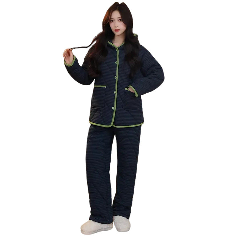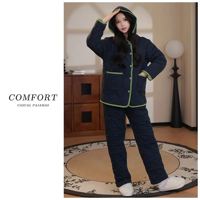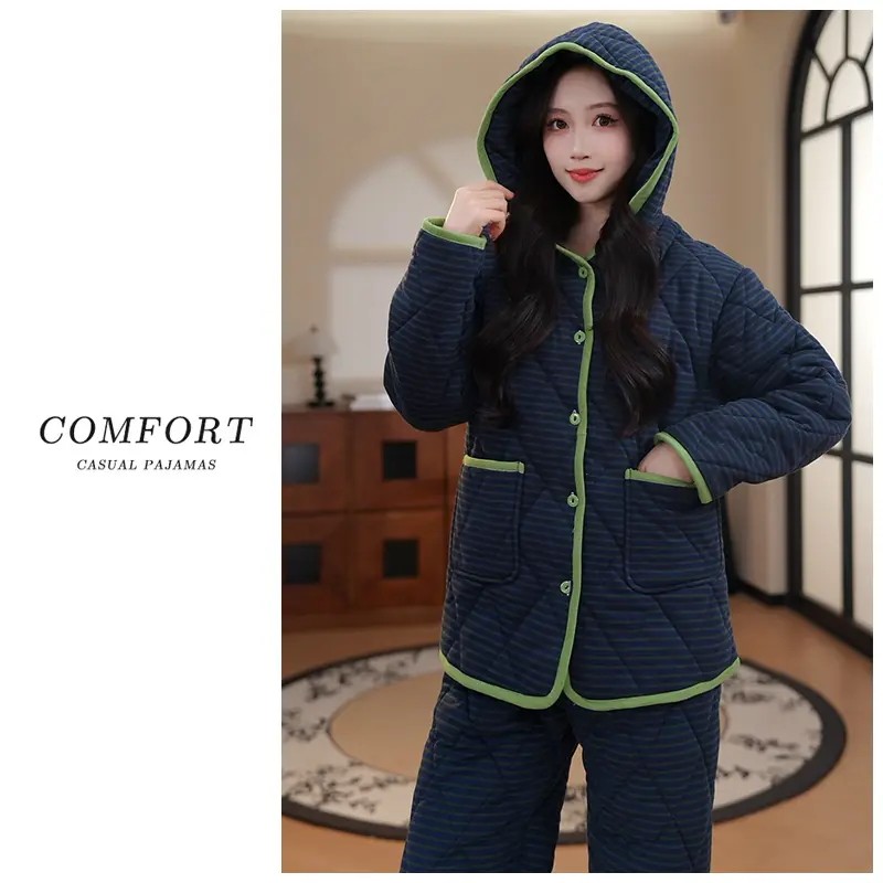 三层夹棉睡衣女冬季加绒加厚2025新款珊瑚绒女生连帽可外穿家居服