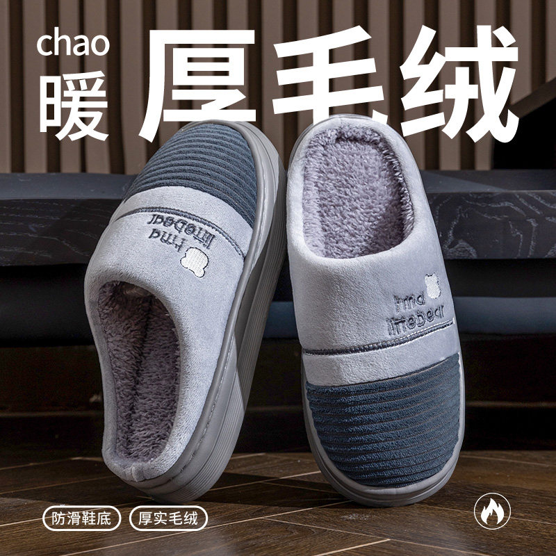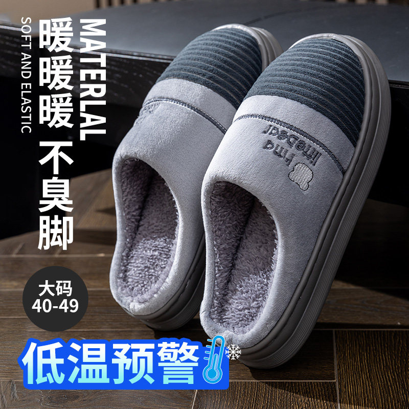 2025新款棉拖鞋男款大码冬季家居家用室内防滑保暖加绒男士厚软底