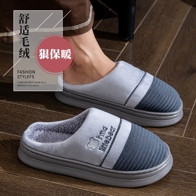 朴西棉拖鞋女士秋冬季厚底简约保暖室内居家用软底防滑情侣棉拖男