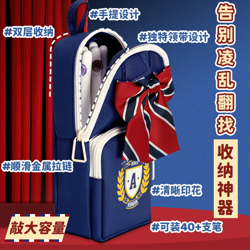 英伦风笔袋男女孩子大容量一三六年级初中小学生2025新款多功能高颜值领带领结铅笔盒儿童开学必备文具收纳袋