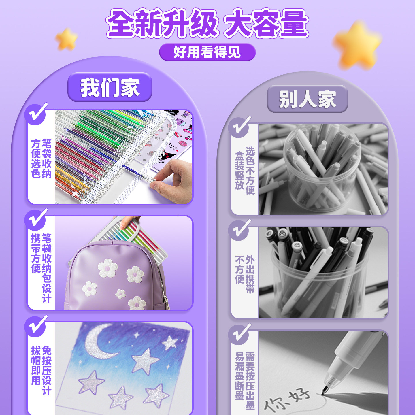 库洛紫米彩色闪光笔啫喱亮晶晶珠光荧光标记笔流沙银光发光水彩笔儿童手帐专用变色画笔小学生闪粉轮廓高光笔