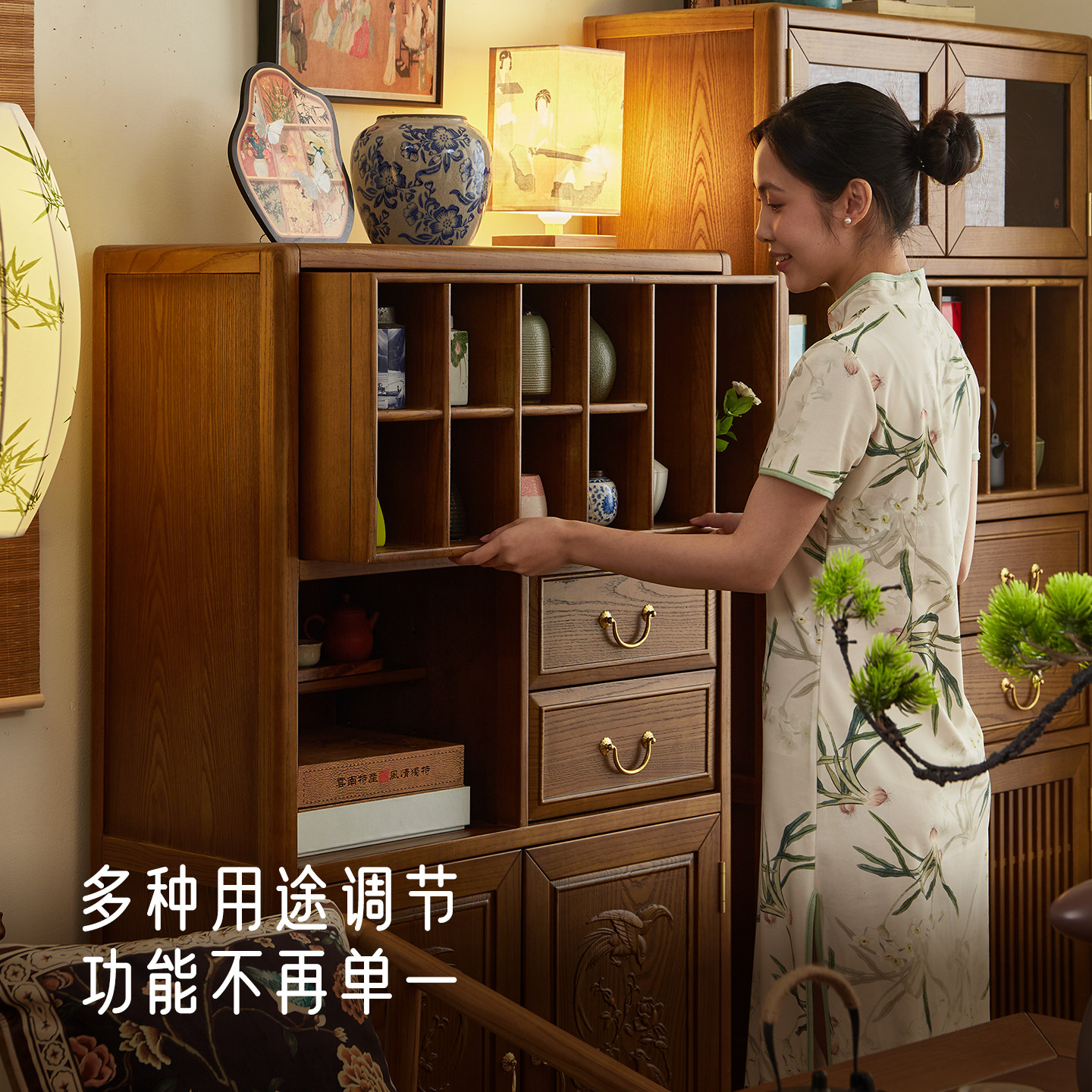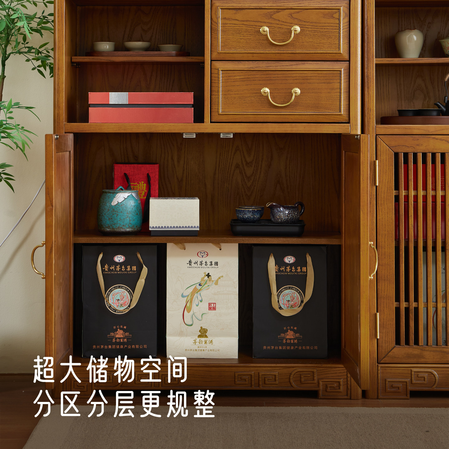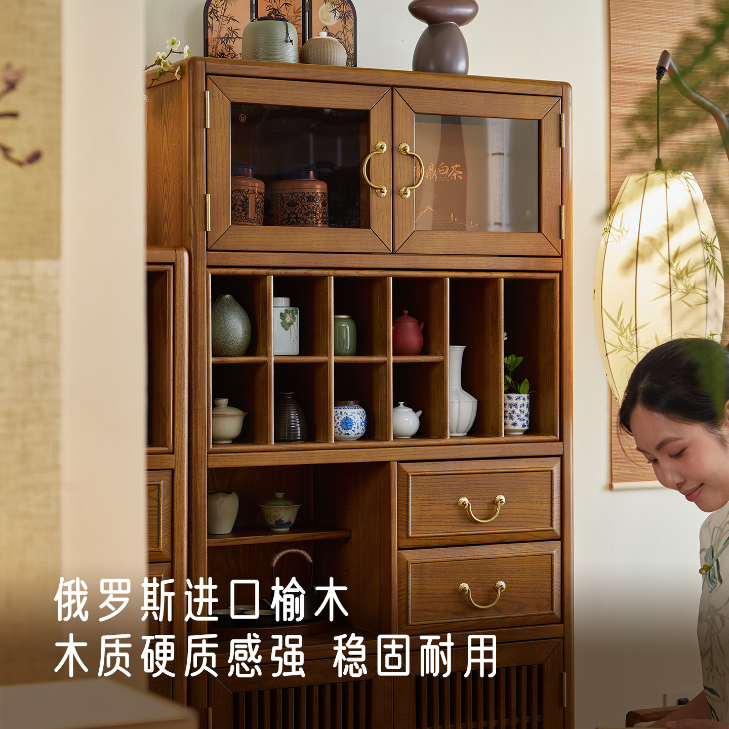 政府补贴阳台实木茶水置物边柜新中式茶室茶具展示收纳书柜博古架