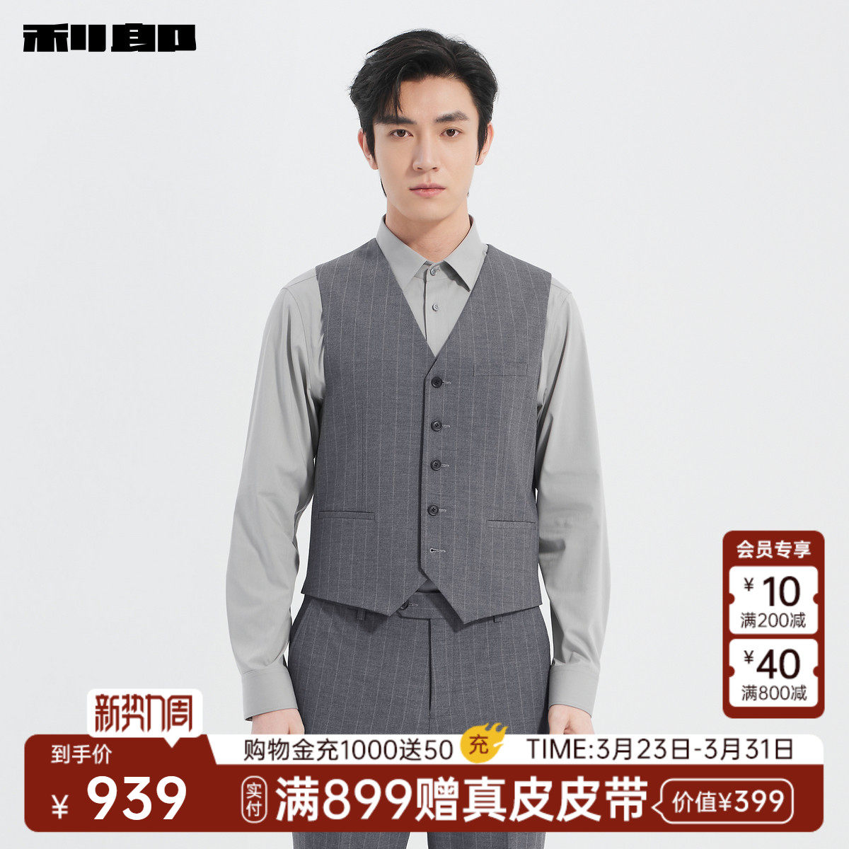 利郎官方 含马甲西服套装色织条纹商务正装翻领春季新款男装西装