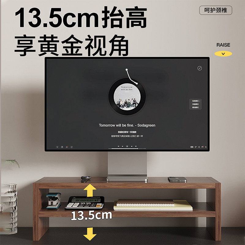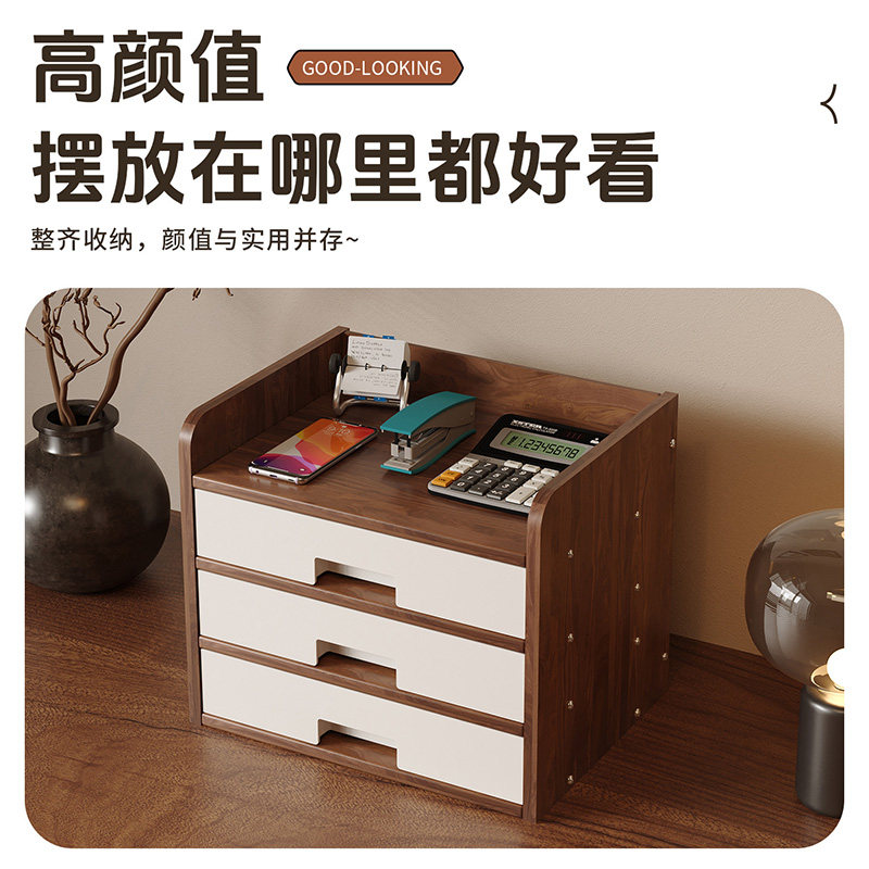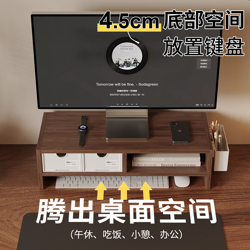 桌面电脑增高架显示器支架带抽屉办公整理置物架多层储物柜抬高架