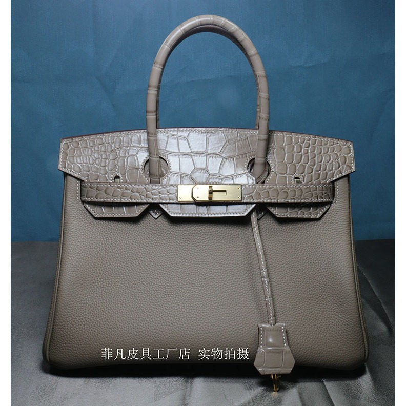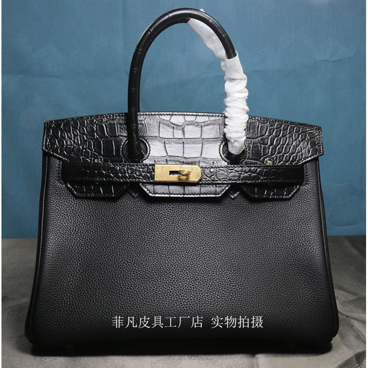 新款touch铂金包Togo牛皮配鳄鱼皮高端拼接手提女包凯莉包25 30CM