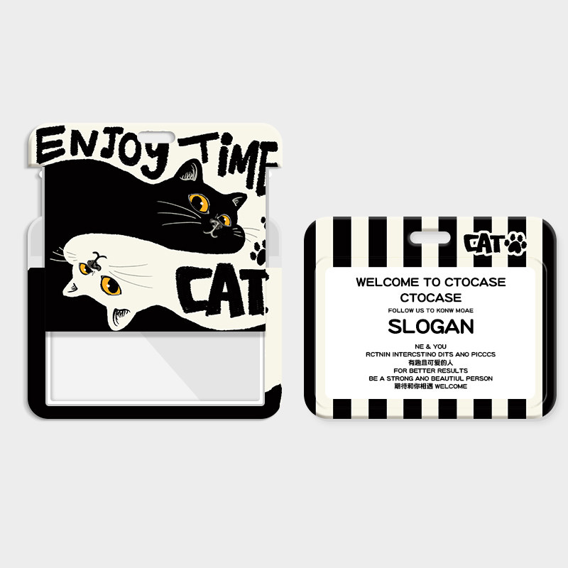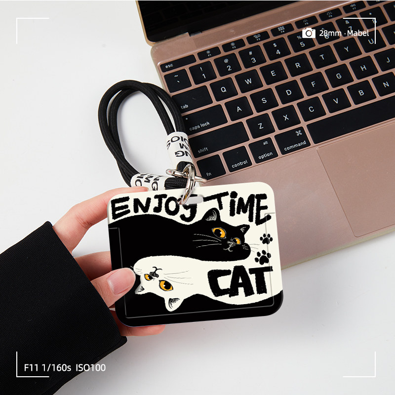 原创【黑白猫】证件保护卡套驾驶证卡通猫咪饭卡校园挂牌挂链卡壳