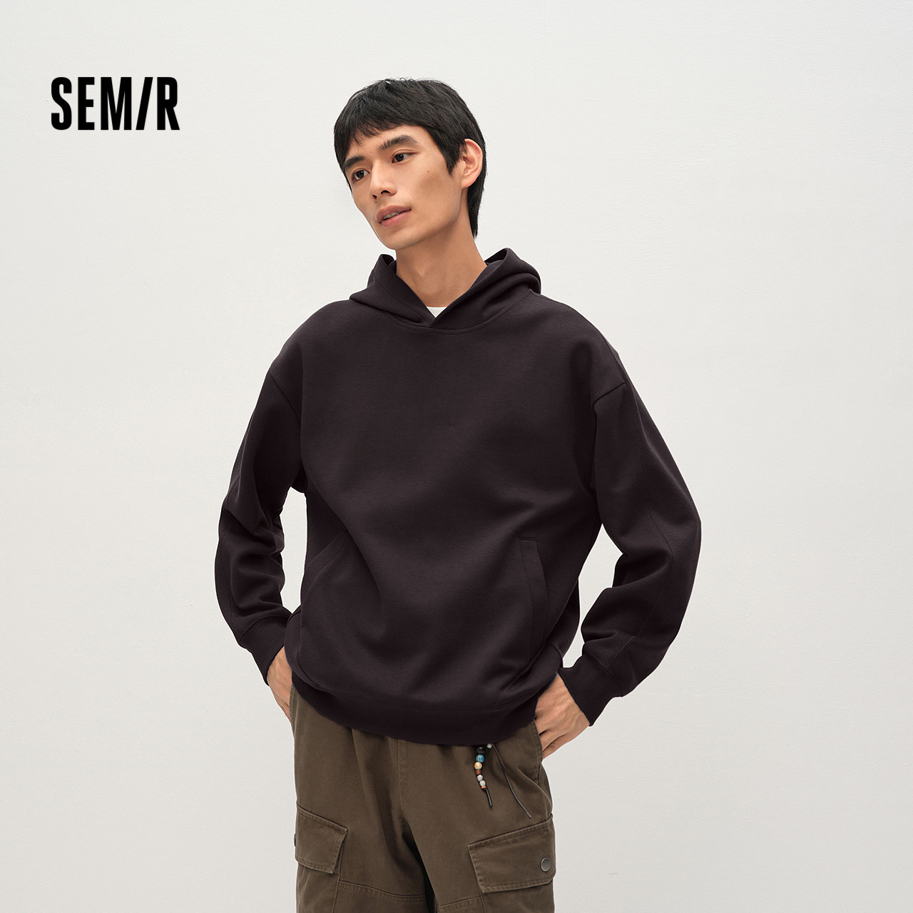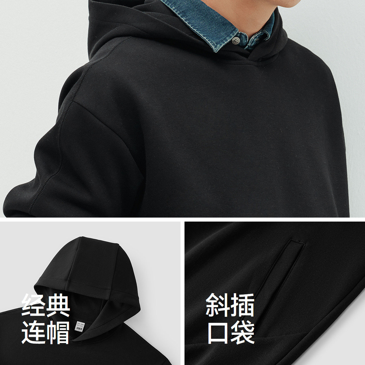 商场同款|森马卫衣男春季纯色连帽上衣情侣装2026新款基础套头衫