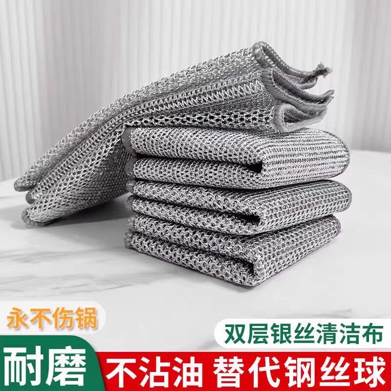 钢丝洗碗布钢丝布厨房专用银丝双面清洁抹布加厚刷锅洗碗不沾油