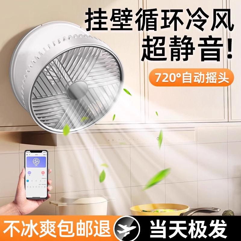 【厨房专用】2026新款壁挂式小风扇制冷免打孔挂墙上厕所卫生间家用电风扇usb充电空调冷风摇头挂扇桌面静音f