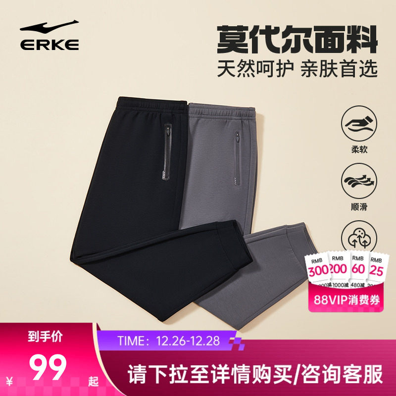 鸿星尔克莫代尔运动裤男秋季新款男士收口裤子针织长裤休闲裤男裤
