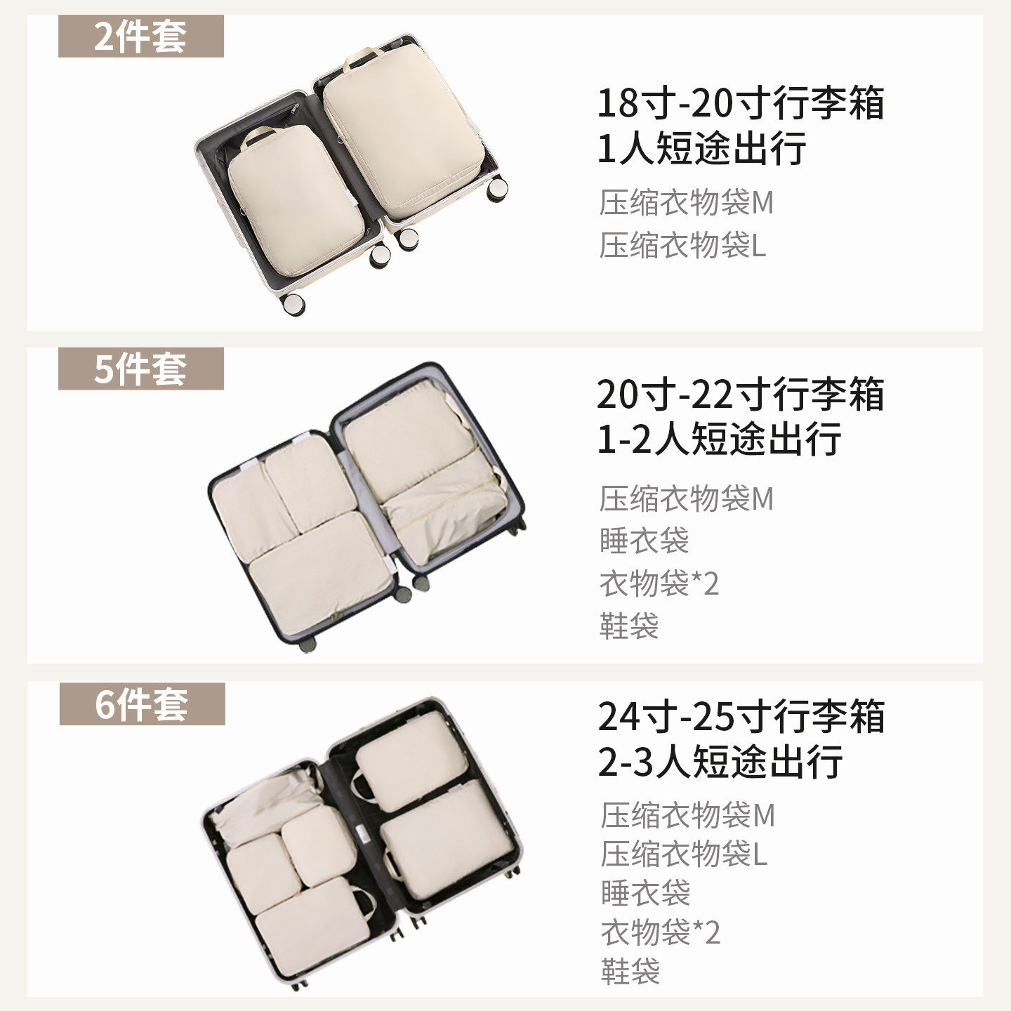 旅行收纳袋羽绒服压缩袋旅游行李箱衣服分装整理袋衣物收纳包出行