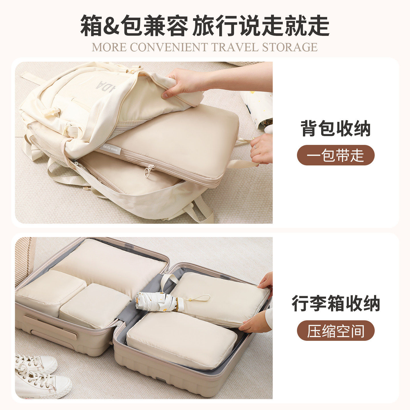 百草园旅行收纳袋衣服行李箱压缩衣物行李袋羽绒服出差旅游收纳包