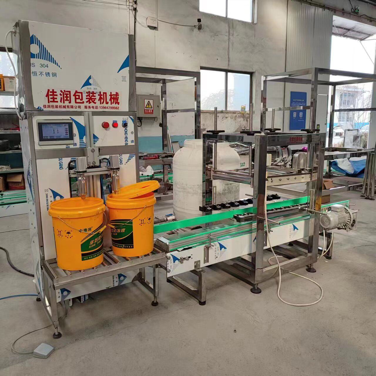 玻璃水防冻液灌装机 两头半自动桶装机 防冻液灌装压桶生产流水线