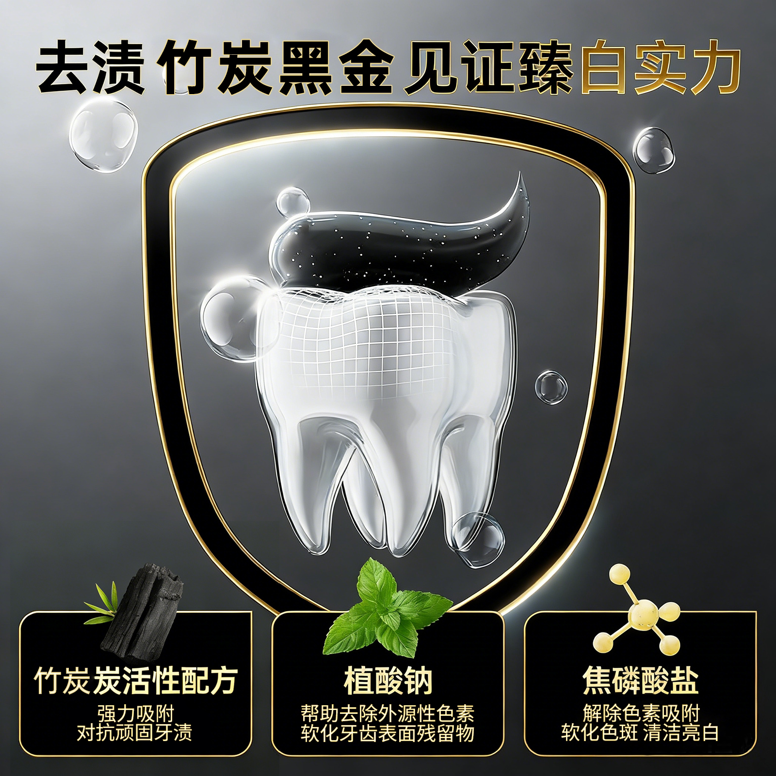 竹炭牙膏去烟渍男士专用去黄亮白牙渍牙膏牙齿口臭官方旗舰店正品