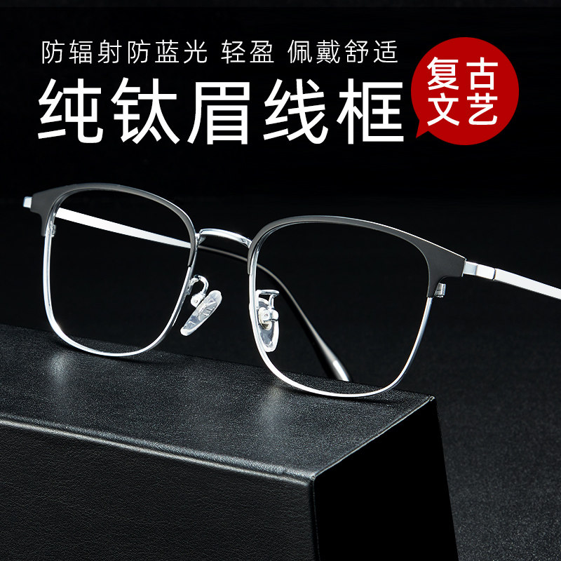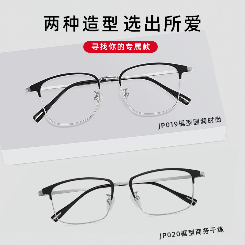 纯钛眼镜框镜架男超轻方框眉线框女可配近视眼镜镜片JP019