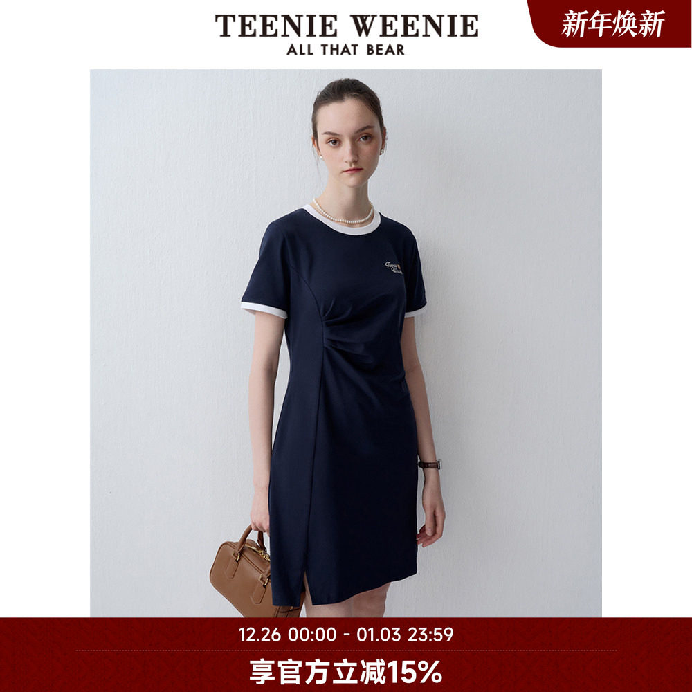 TeenieWeenie小熊奥莱女装夏季复古运动风侧缝拼接压褶连衣裙