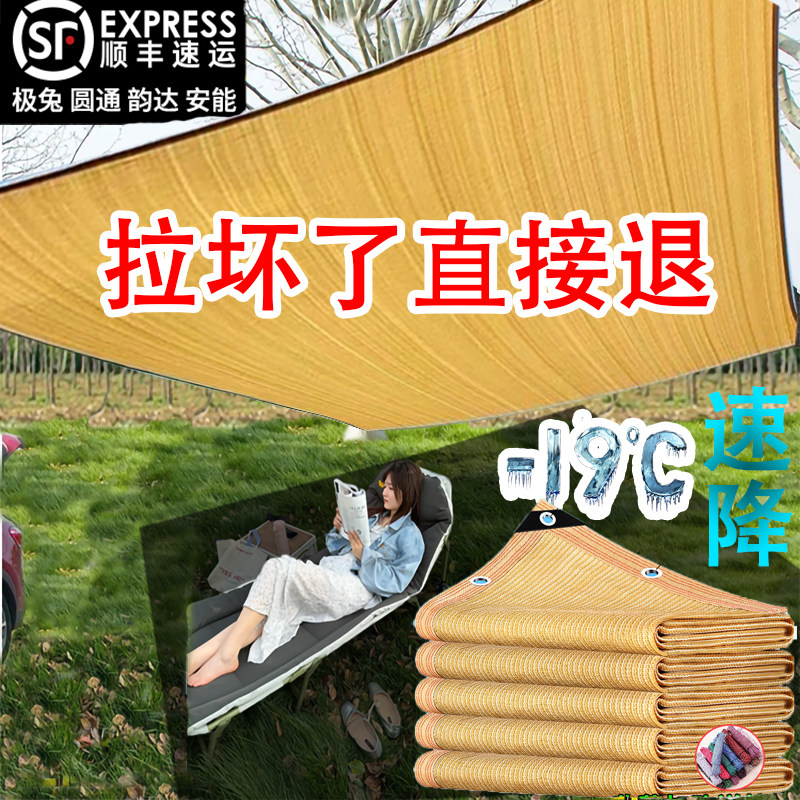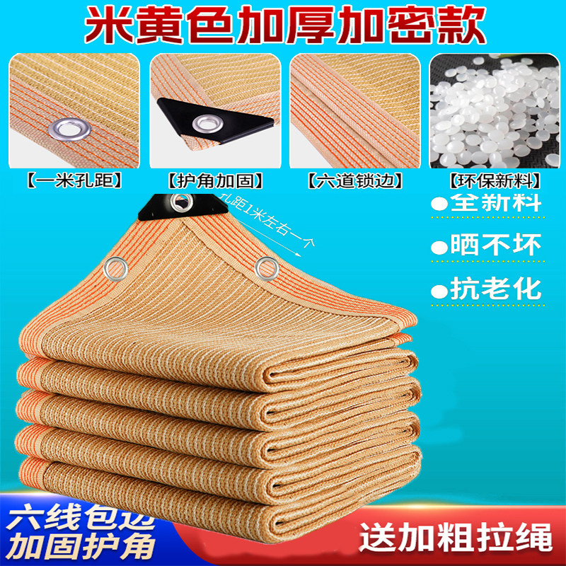 收拉式遮阳网米黄色加密加厚防晒遮阳网家用庭院遮阴时尚米色网罩
