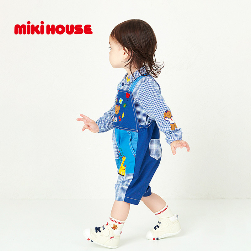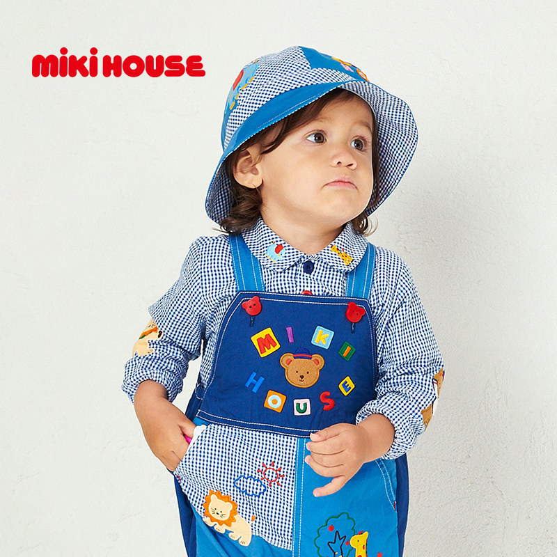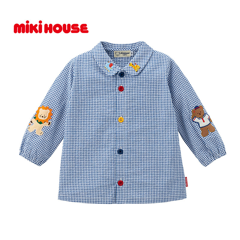 MIKIHOUSE日本制衬衫豪华刺绣系列女童上衣男童长袖格纹衬衫
