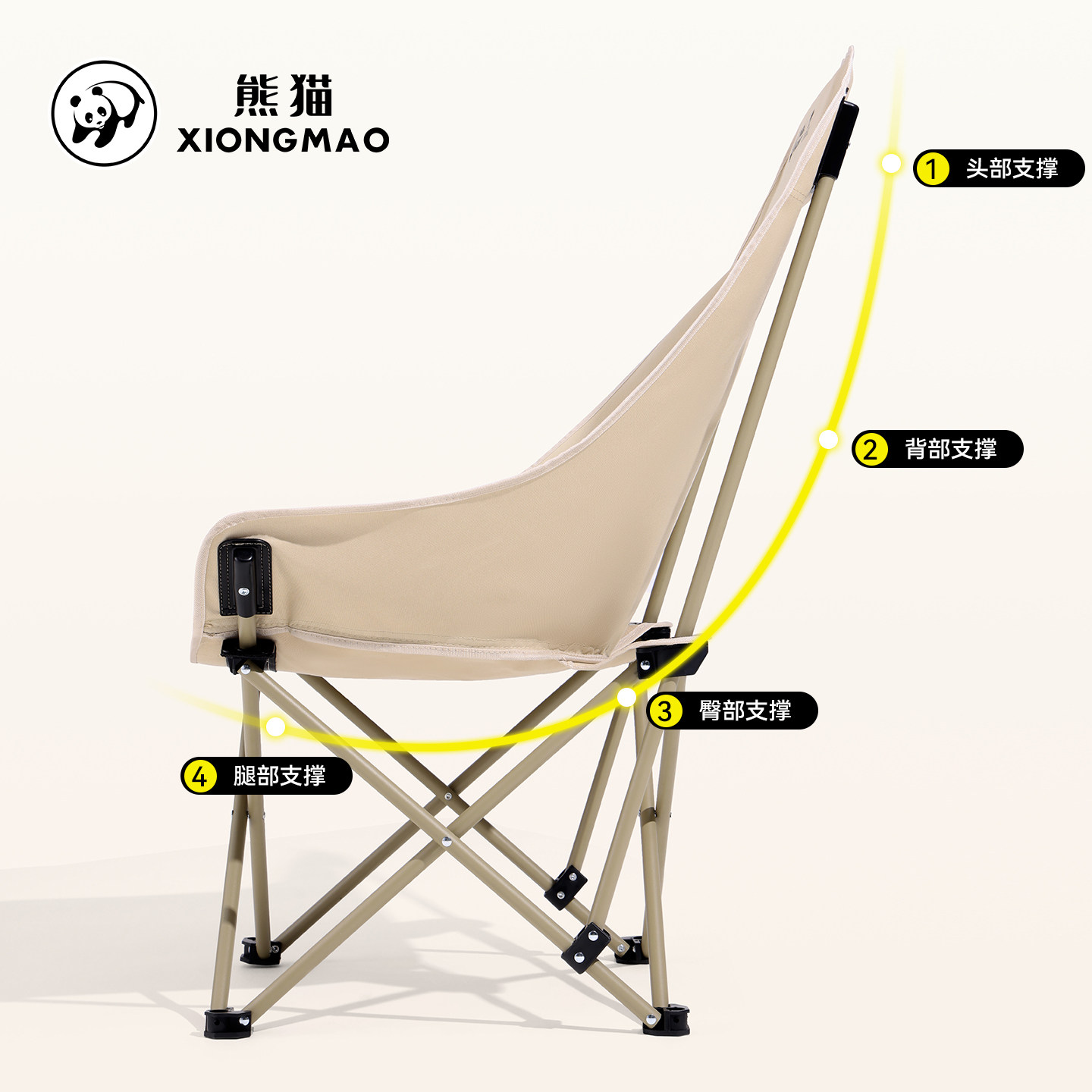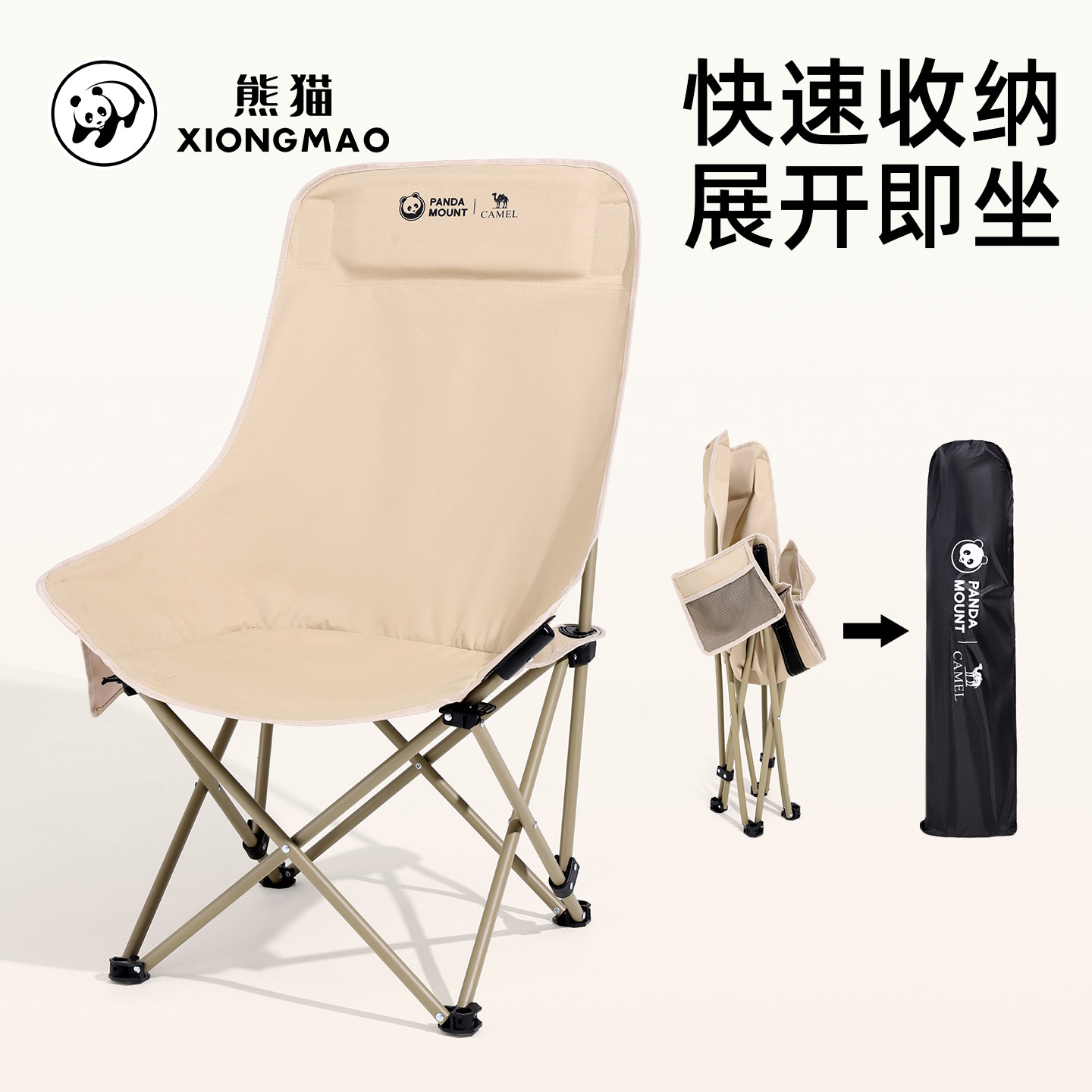 熊猫户外露营折叠椅野餐月亮椅写生便携凳子钓鱼躺椅高靠背椅子