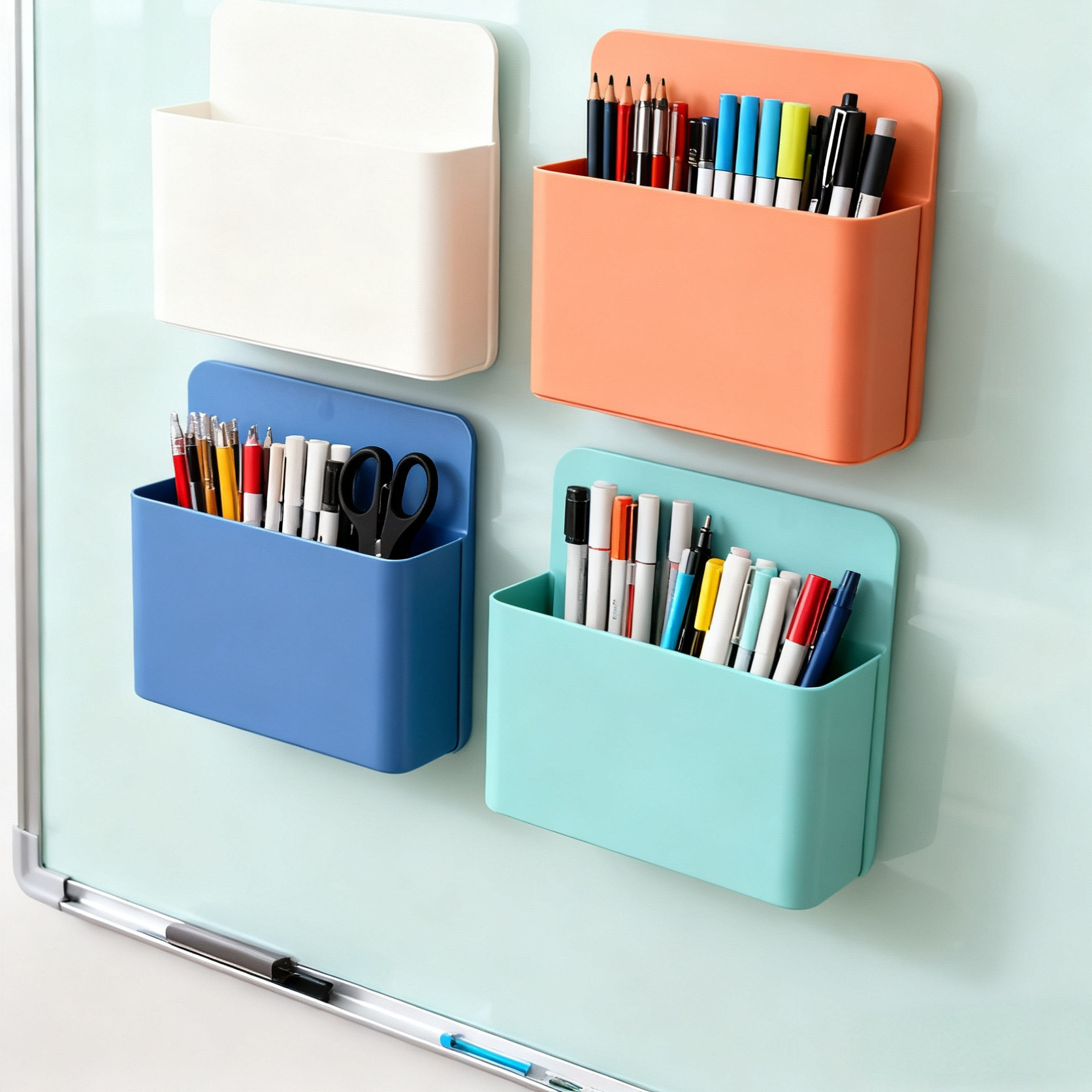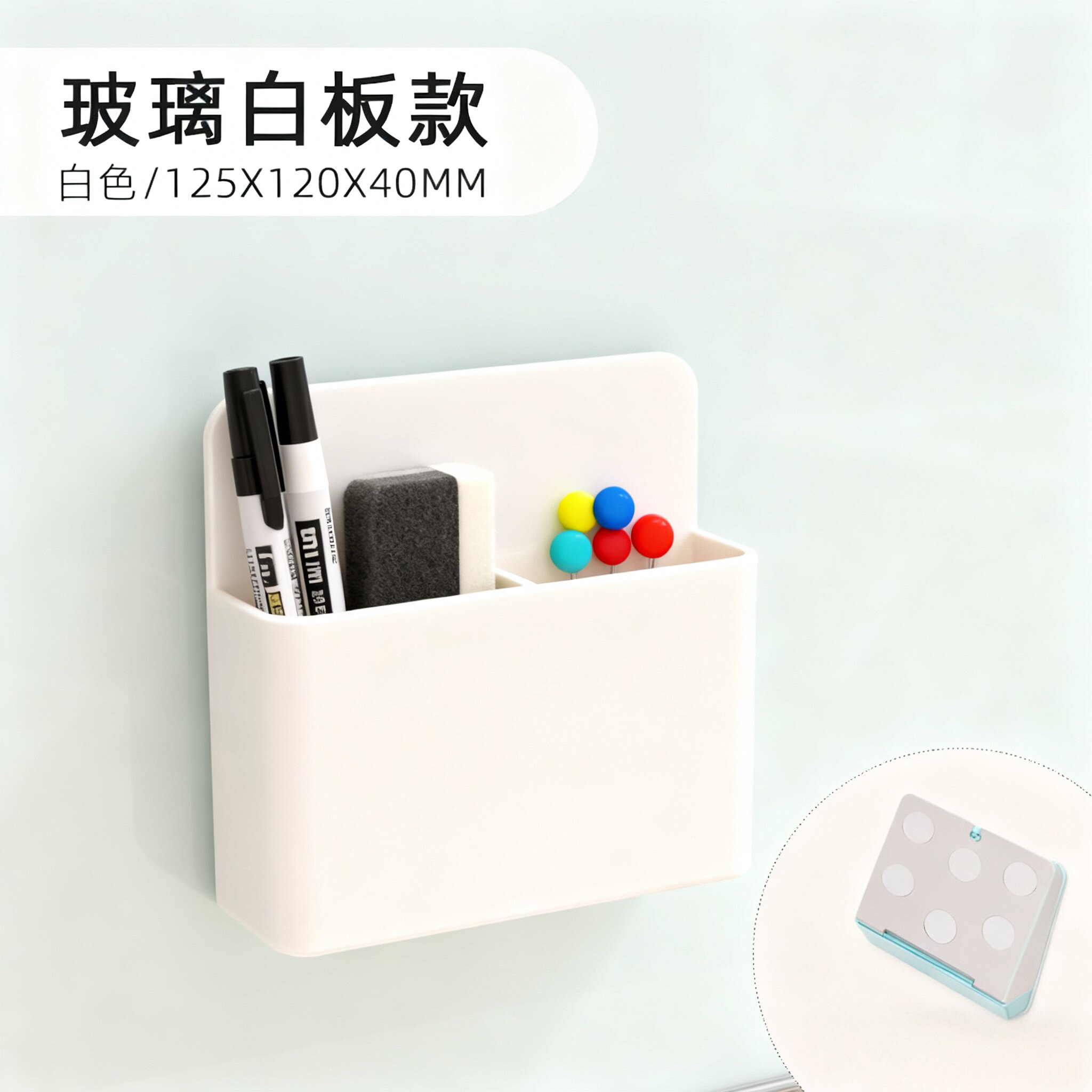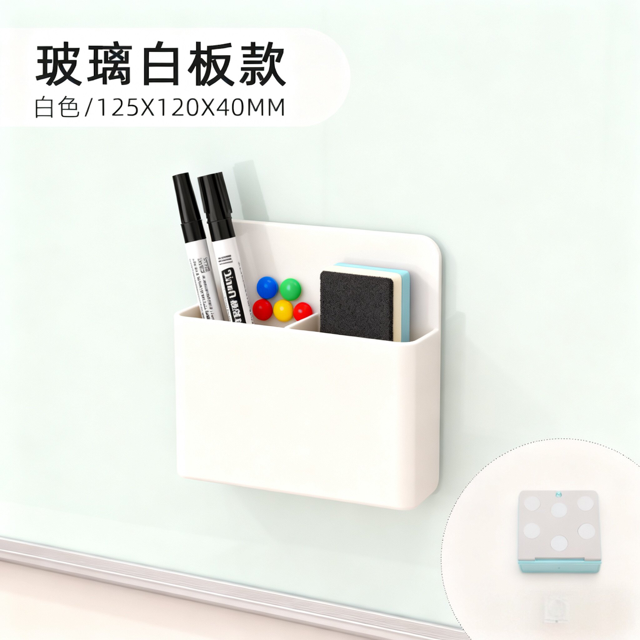 美斯特强磁性玻璃白板专用笔筒可吸附强磁铁磁钉磁扣白板笔黑板擦磁性办公家用桌面收纳盒