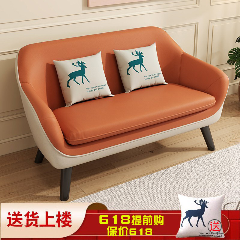 双人小沙发小户型皮简约北欧客厅出租房公寓酒店宾馆服装店猫抓皮