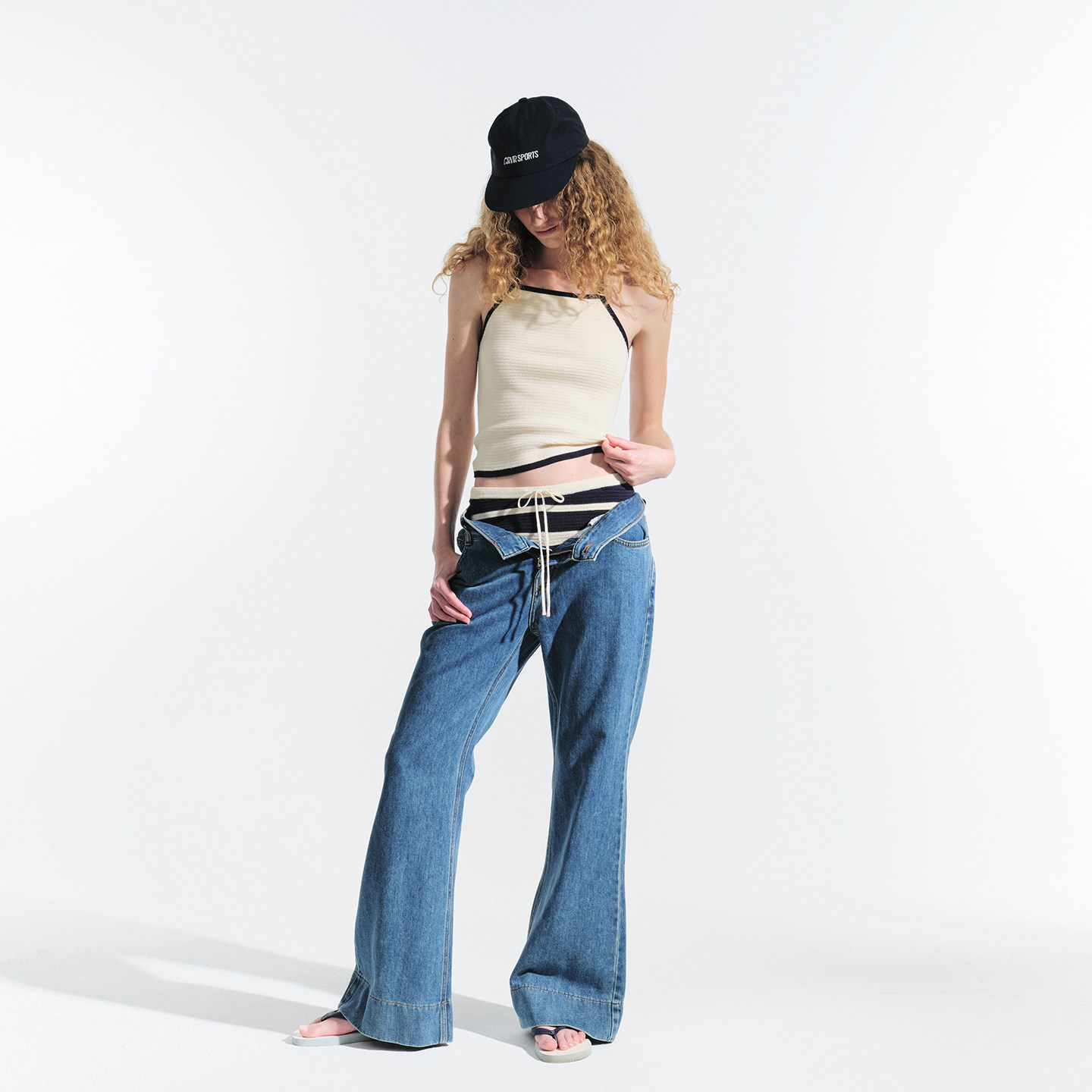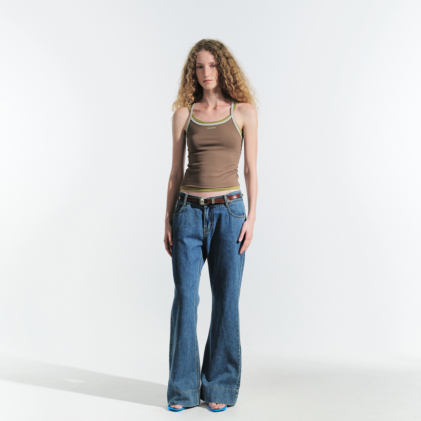 twosweet【超级裤神】四面弹重塑大长腿高腰直筒微喇叭原色牛仔裤