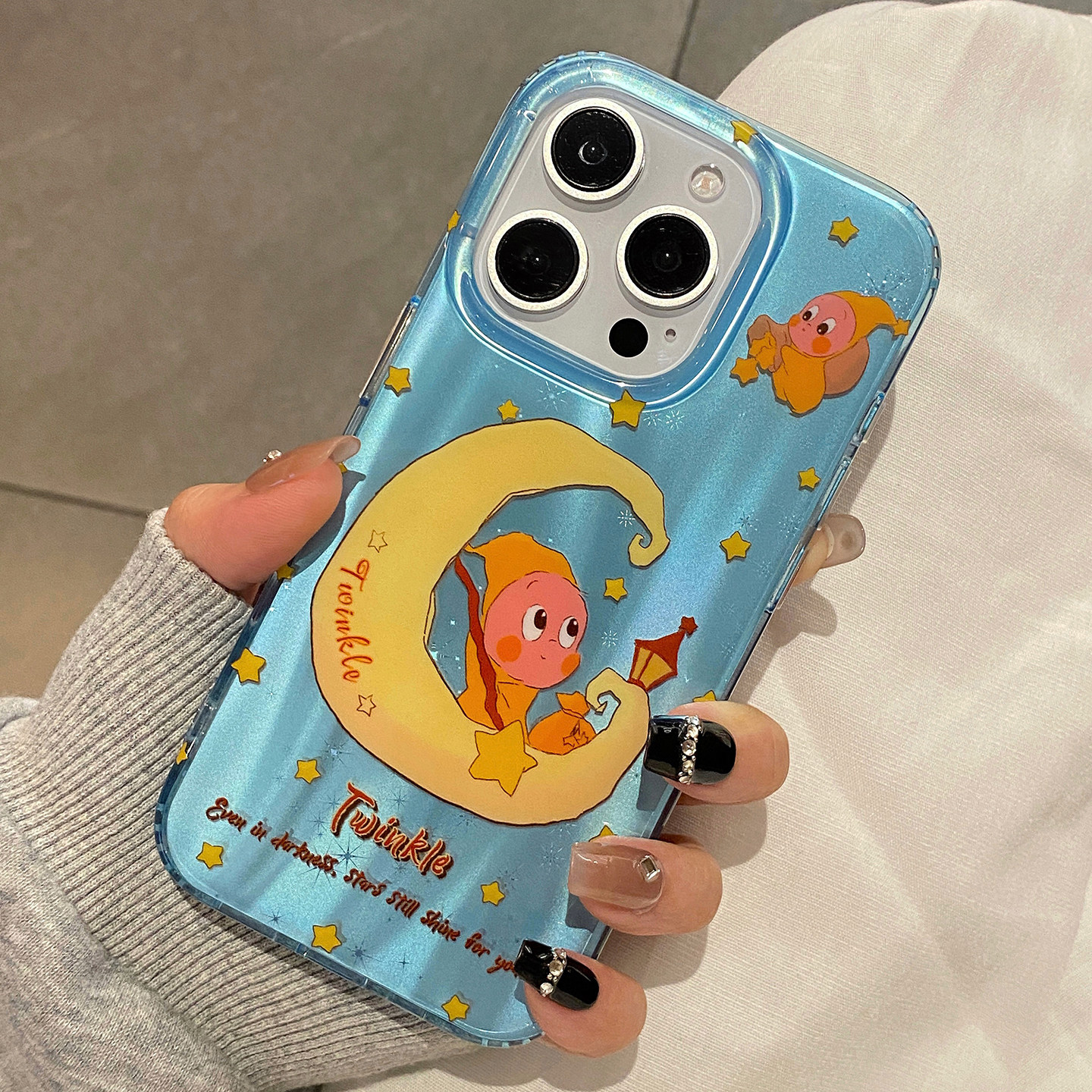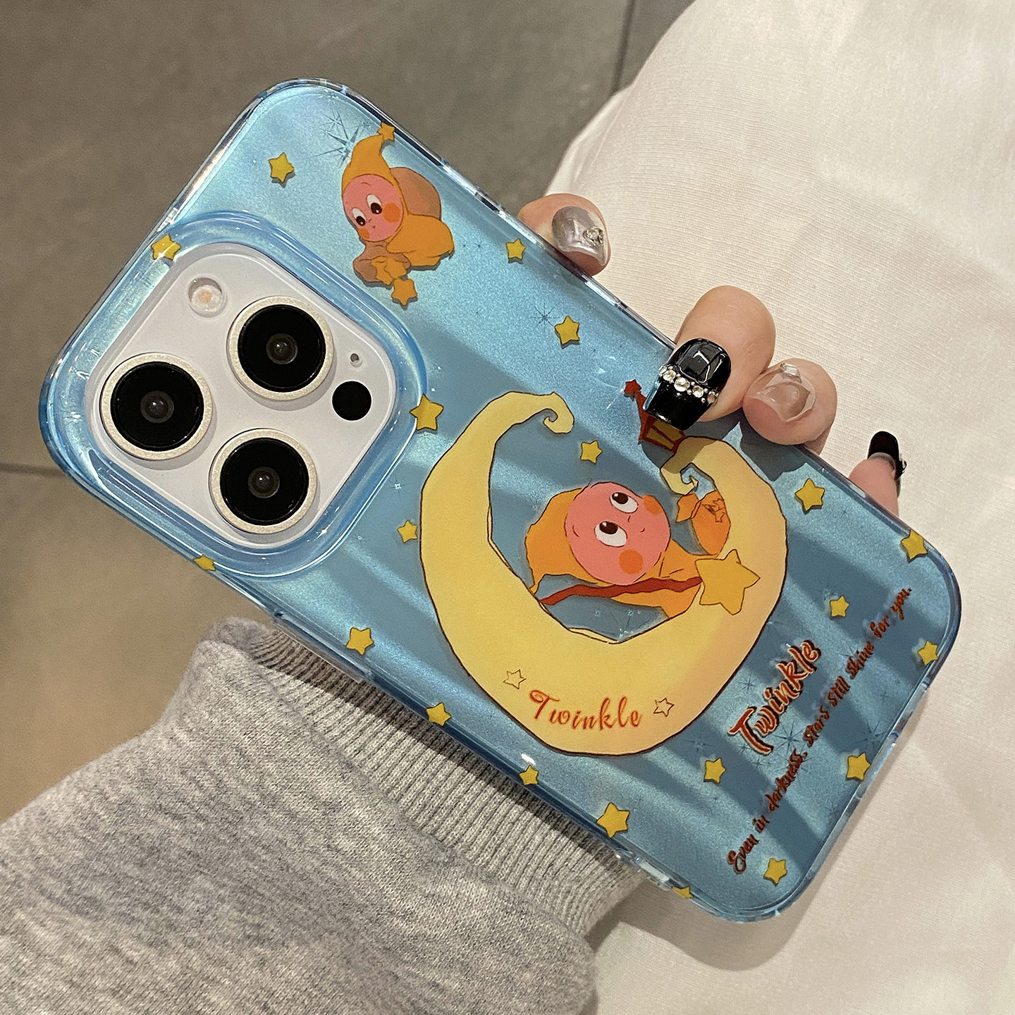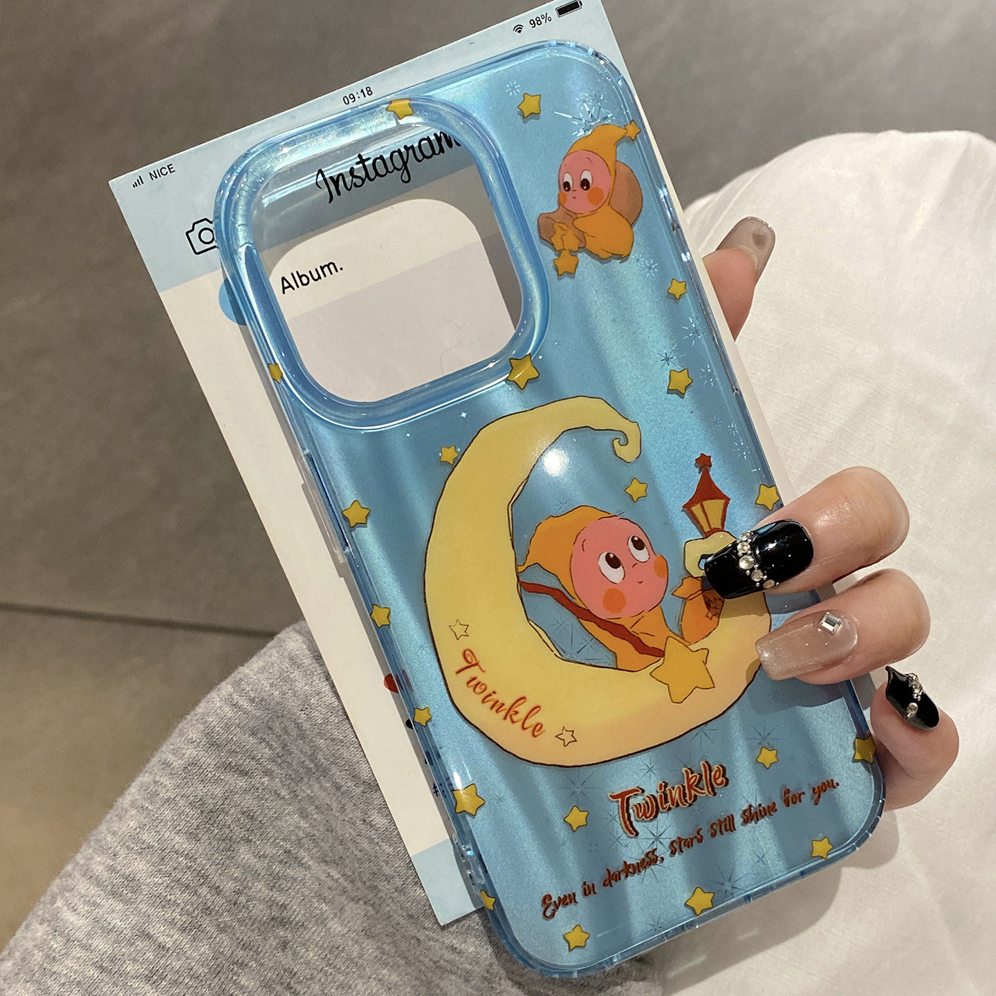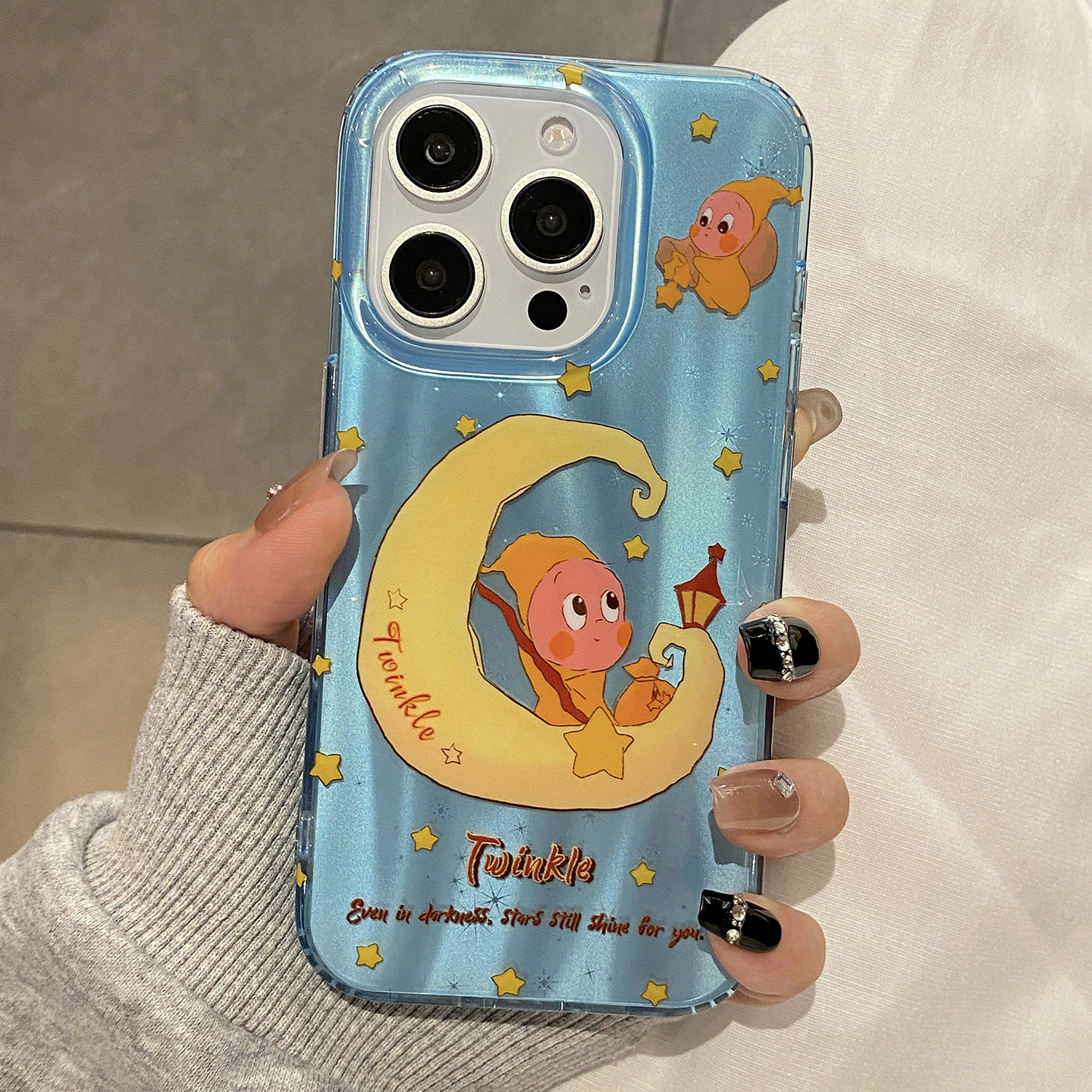 趣味可爱镭射月亮船星星人适用于iphone15手机壳苹果16保护套14全包13新款17promax防摔16pro不撞款max手机套