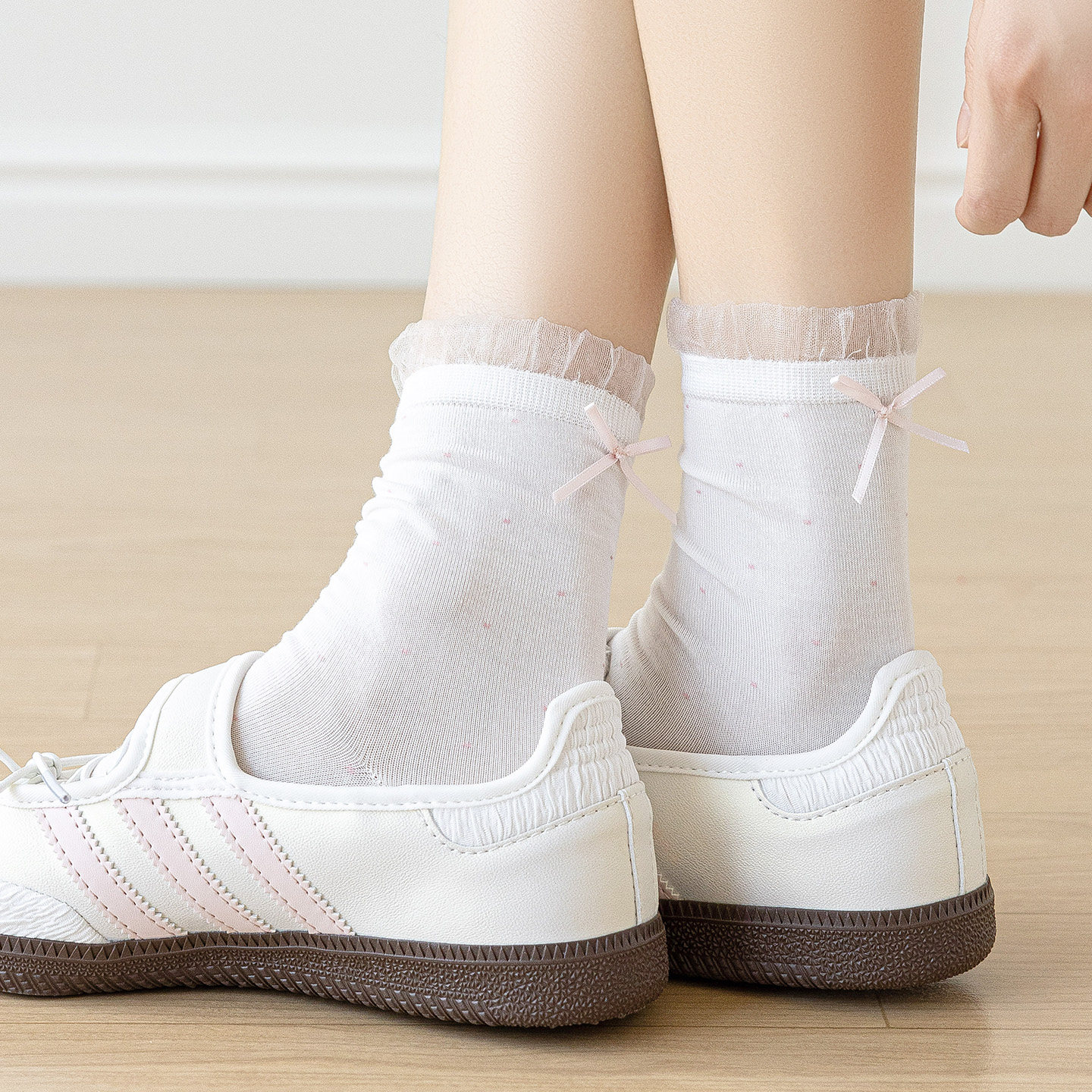 miu蝴蝶结蕾丝袜子女夏季中筒芭蕾风薄款白色花边堆堆袜配玛丽珍