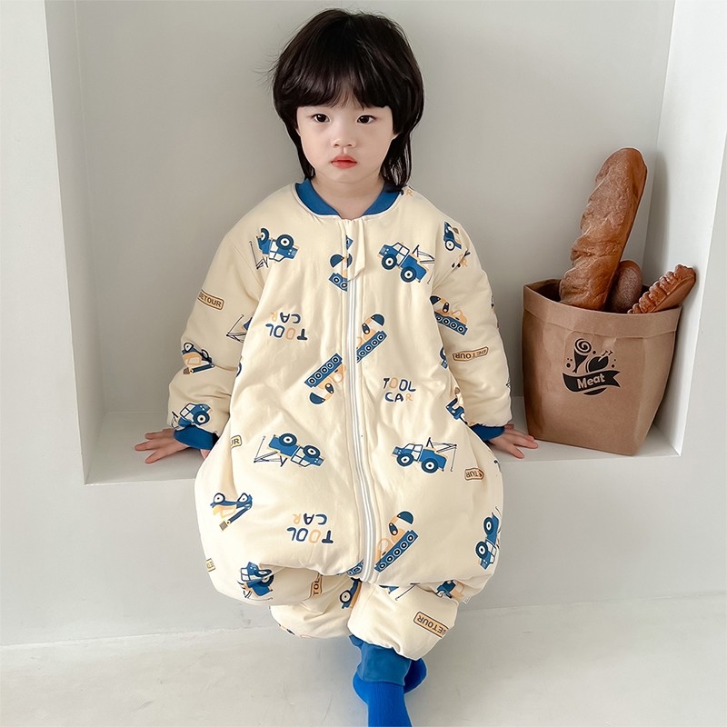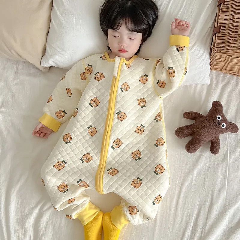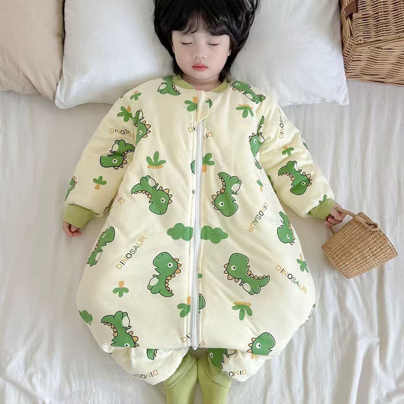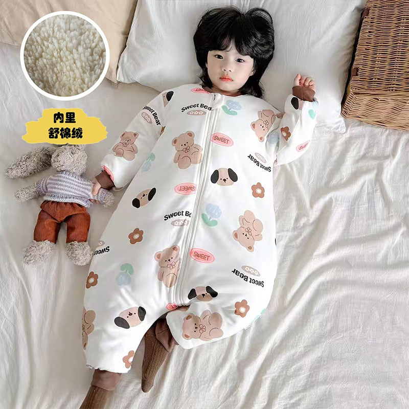 儿童连体睡衣秋冬季防着凉宝宝分腿睡袋夹棉加厚男女童纯棉连身衣