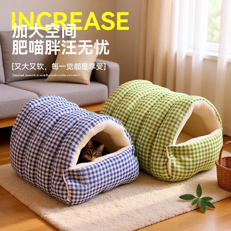 猫窝秋冬季保暖封闭式猫睡袋垫子加绒加厚狗窝可拆洗保温防风